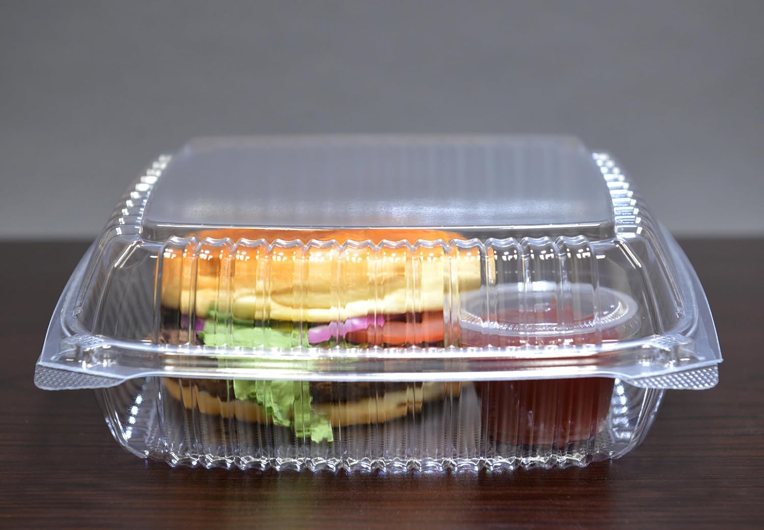 • High quality clear plastic food containers; view or display the contents with ease through these clear, 1-compartment, 8 x 8 x 3 inch clamshells which also makes them great for meal prepping