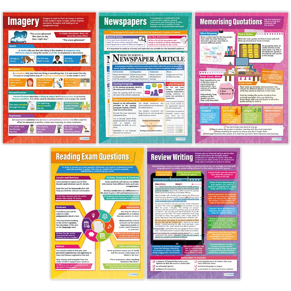Reading and Writing Posters - Set of 19 | English Posters for Common Core State Standards (CCSS) | Laminated Gloss Paper 33” x 23.5” | Language Arts Classroom Posters | Education Charts by Daydream