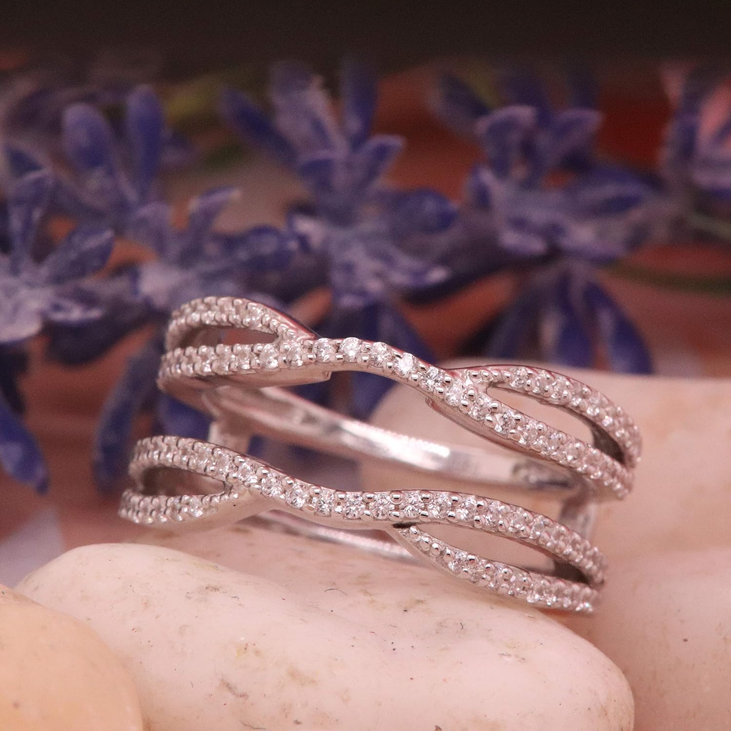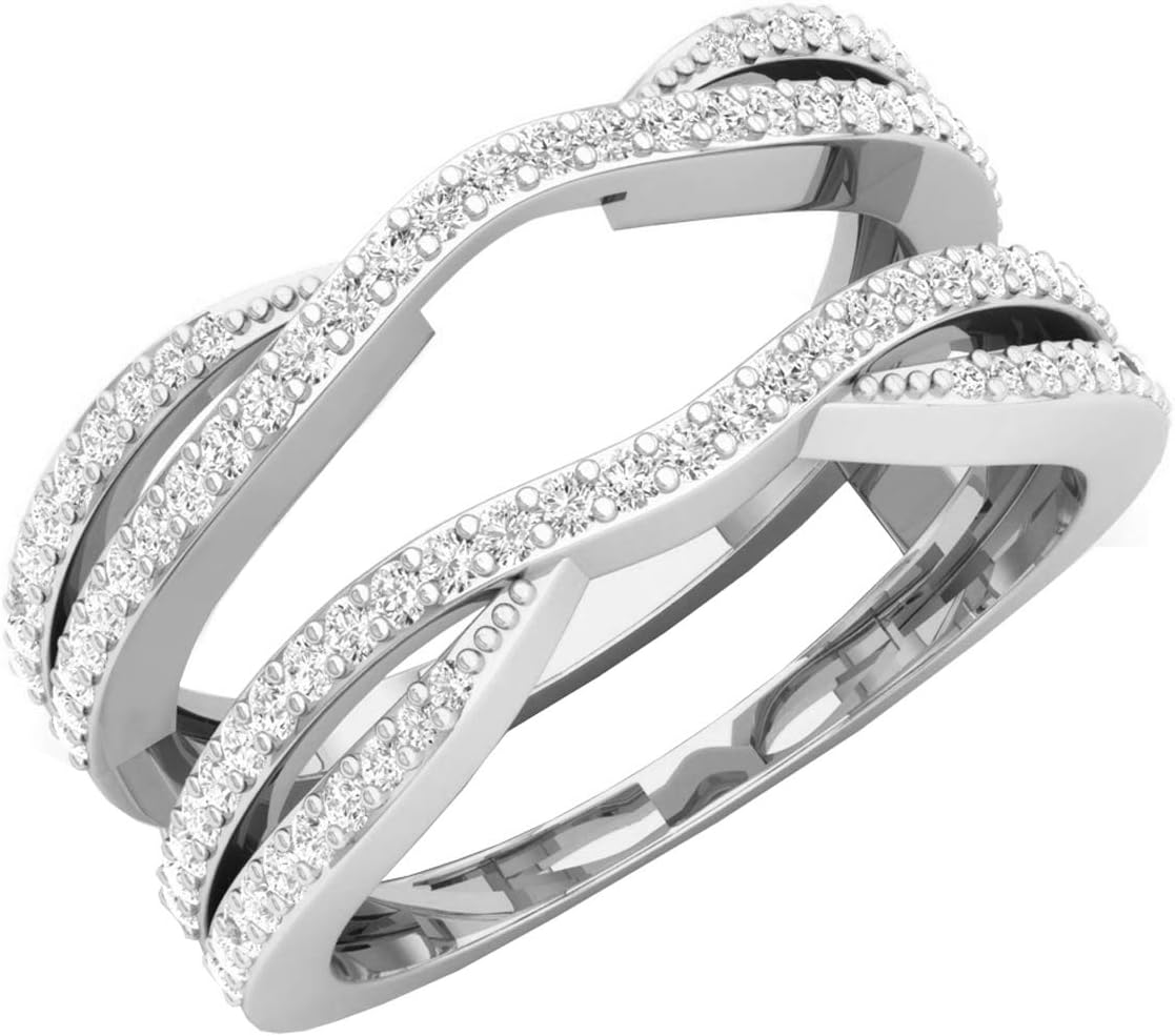 This lovely wedding ring features 0.68 cttw. Cubic Zirconia in prong setting. All cubic zirconia are sparkling. Our product includes a complimentary jewelry box for safe storage and presentation. The Gap between guards is 2.5 mm. SKU # K5714-CZ
