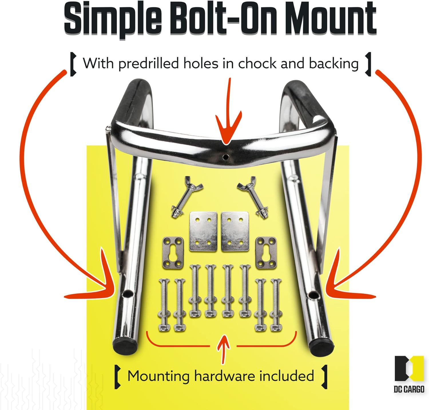 Looking for a reliable and easy way to transport your motorcycle? Look no further than DC Cargo's Versatile Fit Motorcycle Wheel Chocks for Trailer. This heavy-duty motorcycle chock is built to handle even the toughest road conditions and is designed to make it easy to safely transport your motorcycle wherever you need to go. DC Cargo's motorcycle wheel chocks are made with durable materials that can withstand even the most rigorous road conditions. The chock is designed to fit most motorcycles with 3-5.5 inch wide wheels, so you can be sure that your bike will be securely anchored during transport. DC Cargo's motorcycle wheel chocks come with all of the necessary hardware for easy installation, making the process straightforward and quick. Even if you're not a seasoned DIY enthusiast, you'll have the chock installed in just a few minutes. At DC Cargo, we take pride in providing our customers with top-quality products that are designed to make life on the road easier and more enjoyable. Our motorcycle wheel chocks are made with the same attention to detail and quality that you've come to expect from DC Cargo. Trust us to provide you with a secure and reliable way to transport your motorcycle.