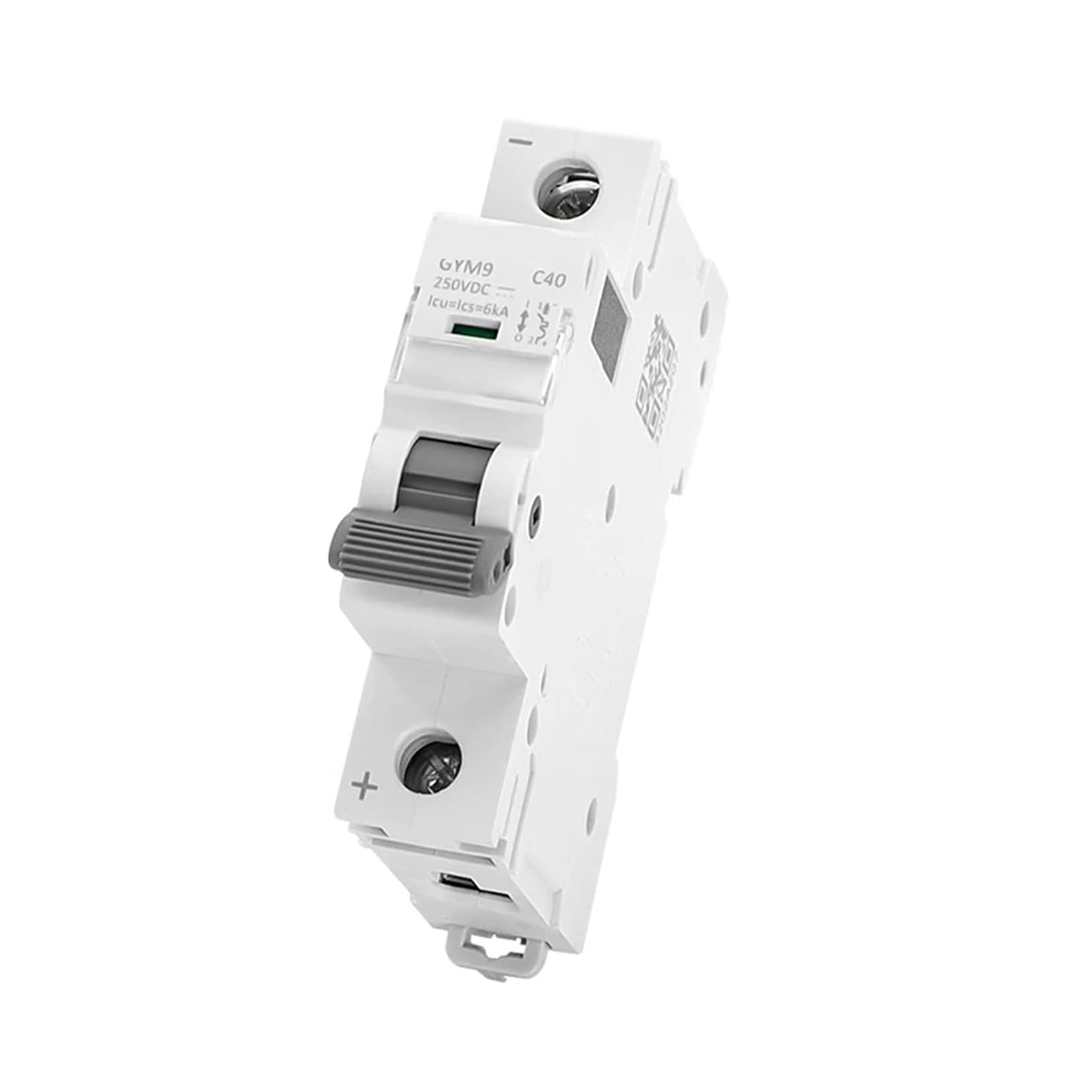 Magnetic Circuit BreakersType : MiniType : Circuit breakerProduct Name : GYM9 DC MCBFunction : Direct CurrentVoltage : AC220/400VPoles : 1P DC MCBRated Current : 6A 10A 16A 20A 25A 32A 40A 50A 63A