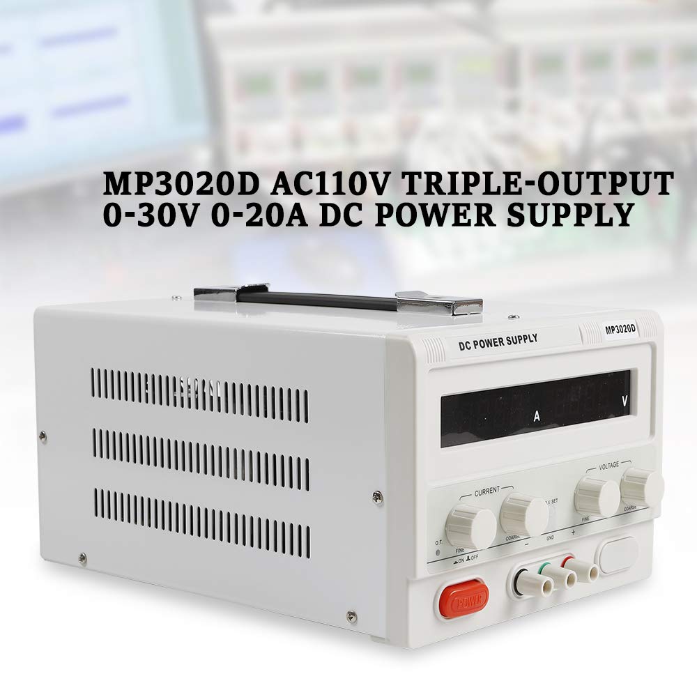 DC Power Supply, MP3020D AC110V Double Output 0-30V 0-20A Adjustable Switching Regulated Variable Bench Linear, LED Digital Display