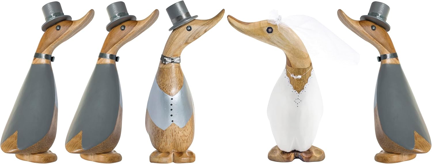 Made from sustainable bamboo root, these wedding ducks from DCUK would make a charming gift for the happy couple. The tallest duck ornament stands around 21cm highThese are hand made ducks from DCUK and have been carved from sustainable bamboo root. This material is often discarded in its native Indonesia and the success of DCUK wooden ducks has meant that the Devon company now employs over 200 people in Indonesia. They are able to earn up to twice the local minimum wage. Their skills are passed on from generation to generation. So, every duck from DCUK helps to support the artisan heritage of the region.Hand carved and hand painted.Has a label around the neck which gives a name. These are randomly selected.