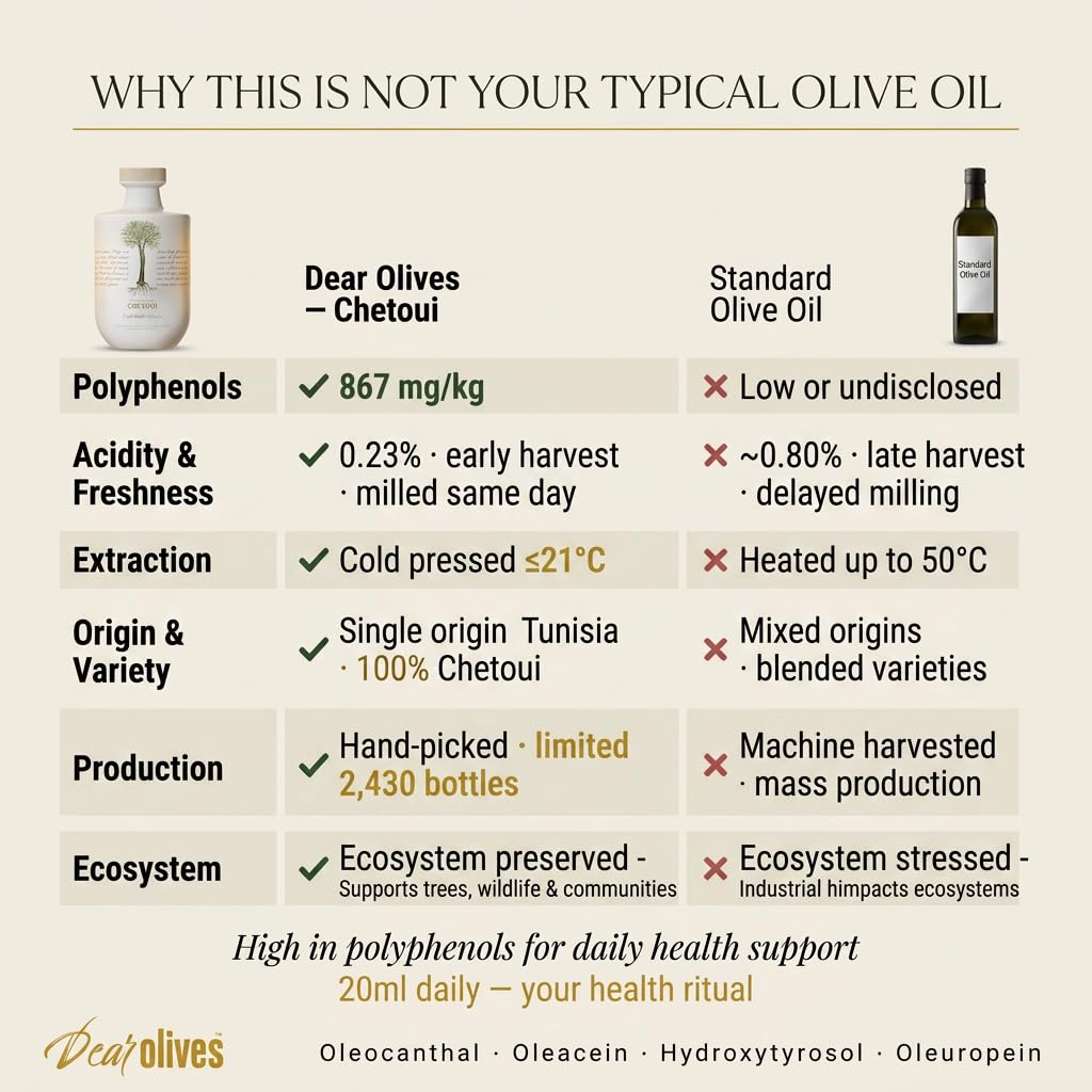 | Special Features | Cold Pressed, Early Harvest, Single Origin, Ultra-Premium Extra Virgin, Very High Polyphenol |