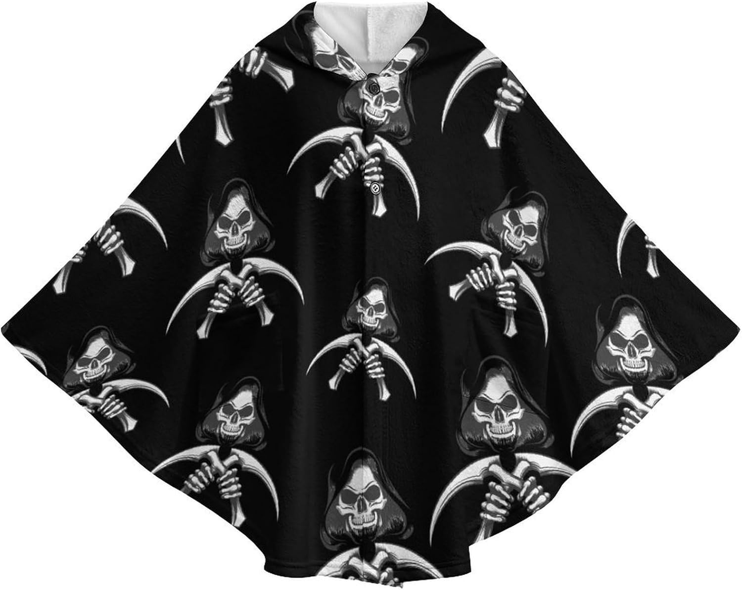 The wearable blanket is made of soft and comfortable flannel fabric, which makes you feel warm in spring, autumn and winter. It has a cape-like shape, a button closure for easy wearing and taking off, and two pockets.