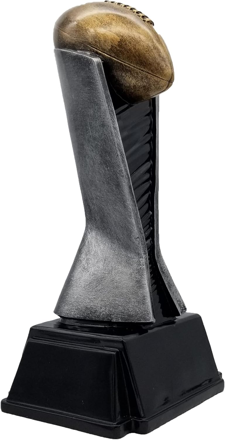 This World Class Football Tower Trophy by Decade Awards is available in 6, 8 or 12 Inch sizes. This single piece, hand painted resin award features a bronze football on top of an artistic silver & black goalpost on a black base. It is a fantastic trophy for any football fan, fantasy football league winner or school championship. Engraving Details: 6” trophy - three (3) lines of engraving; thirty (30) characters & spaces per line 8” trophy - four (4) lines of engraving; thirty (30) characters & spaces per line 12” trophy - six (6) lines of engraving; thirty (30) characters & spaces per line.Each plate is designed and formatted by one of our team members for the most impactful layout possible.Celebrate Life’s Victories with Decade Awards