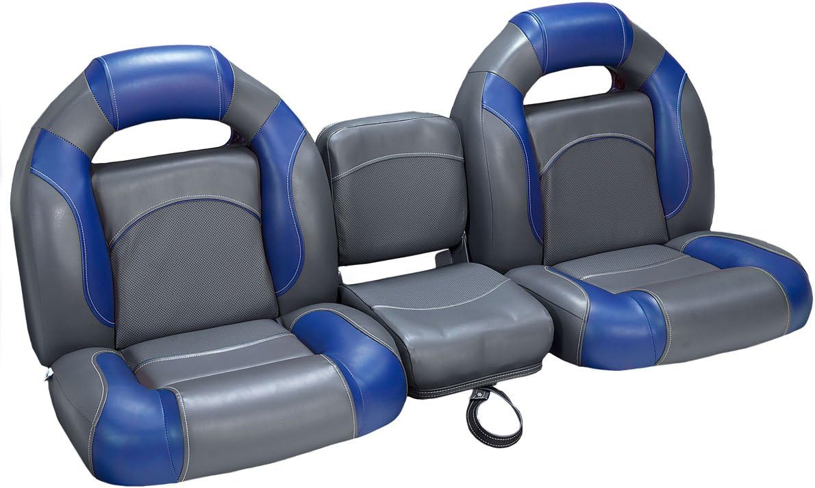 56" Bass Boat Bench Seat Package Driver and passenger side two-piece bucket seats Back and seat cushions attach separately Each bucket seat measures 22" wide 12" wide center fold down seat w/ hold down strap Center seat folds flat and is designed as a step Factory Grade Replacement Seats 3 year full replacement warranty on upholstery 30oz soft to the touch, marine grade seat vinyl Custom molded foam cushions won't break down Plastic frames with 100% stainless steel hardware All mounting hardware is included (stainless)