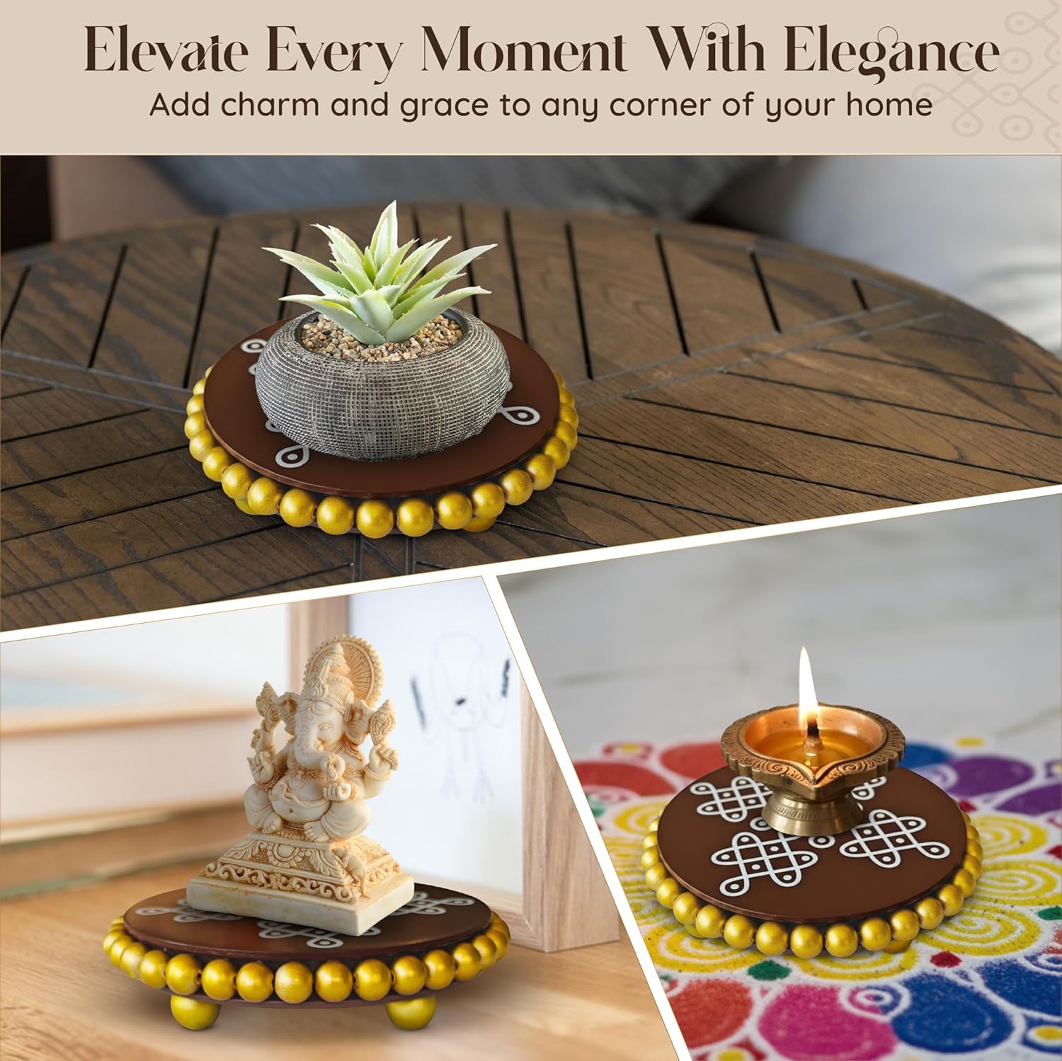 • VERSATILE & MULTIPURPOSE — BEYOND JUST A GIFT Use as a decorative tray riser, diya stand, mithai pedestal, or small pooja item display. Works beautifully for Navratri Golu arrangements, Diwali tablescapes, or as an everyday coffee table accent. A gift they'll actually use and display — not tuck away!