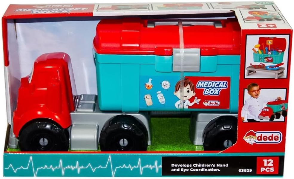 Health first! Medicine kit with truck! All patients are waiting to recover you! Material content of the product is plastic. The product is not suitable for children under 3 years. Health tests passed from domestic production.