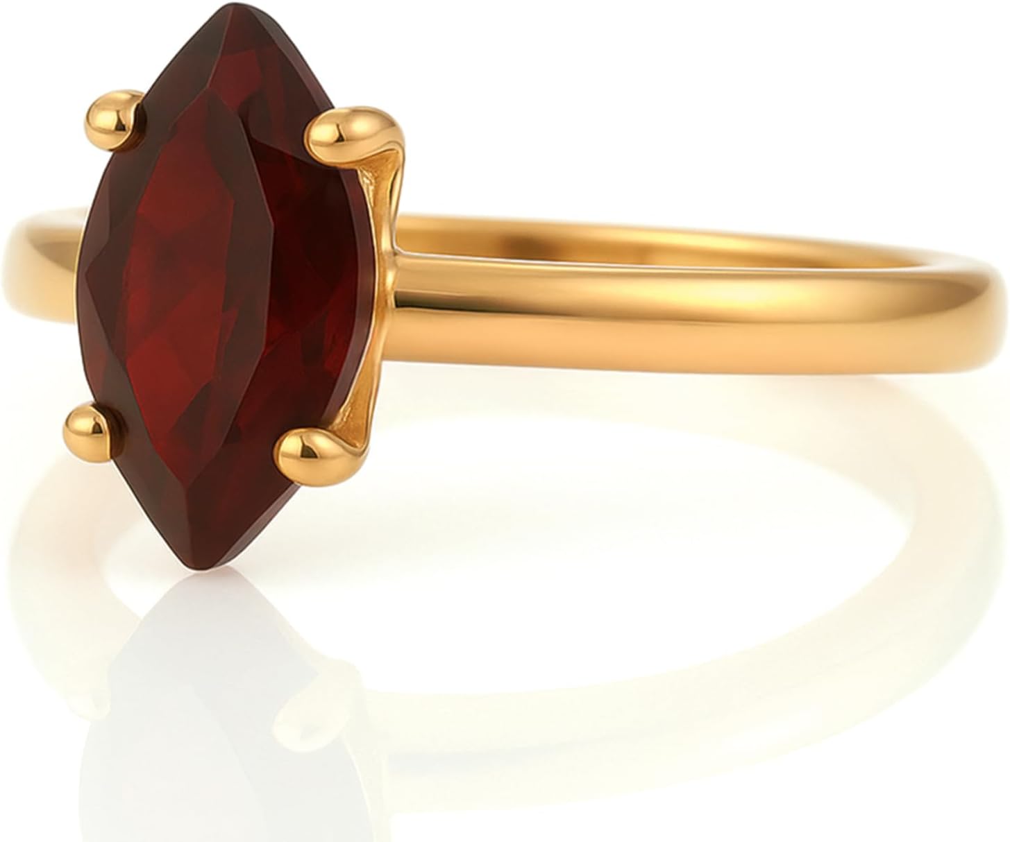 When it comes to jewelry, you can never go wrong with a classic marquise ring. This particular work of art features a Garnet stone with lovely facets and set in prongs. A charming choice for a birthday or anniversary gift.