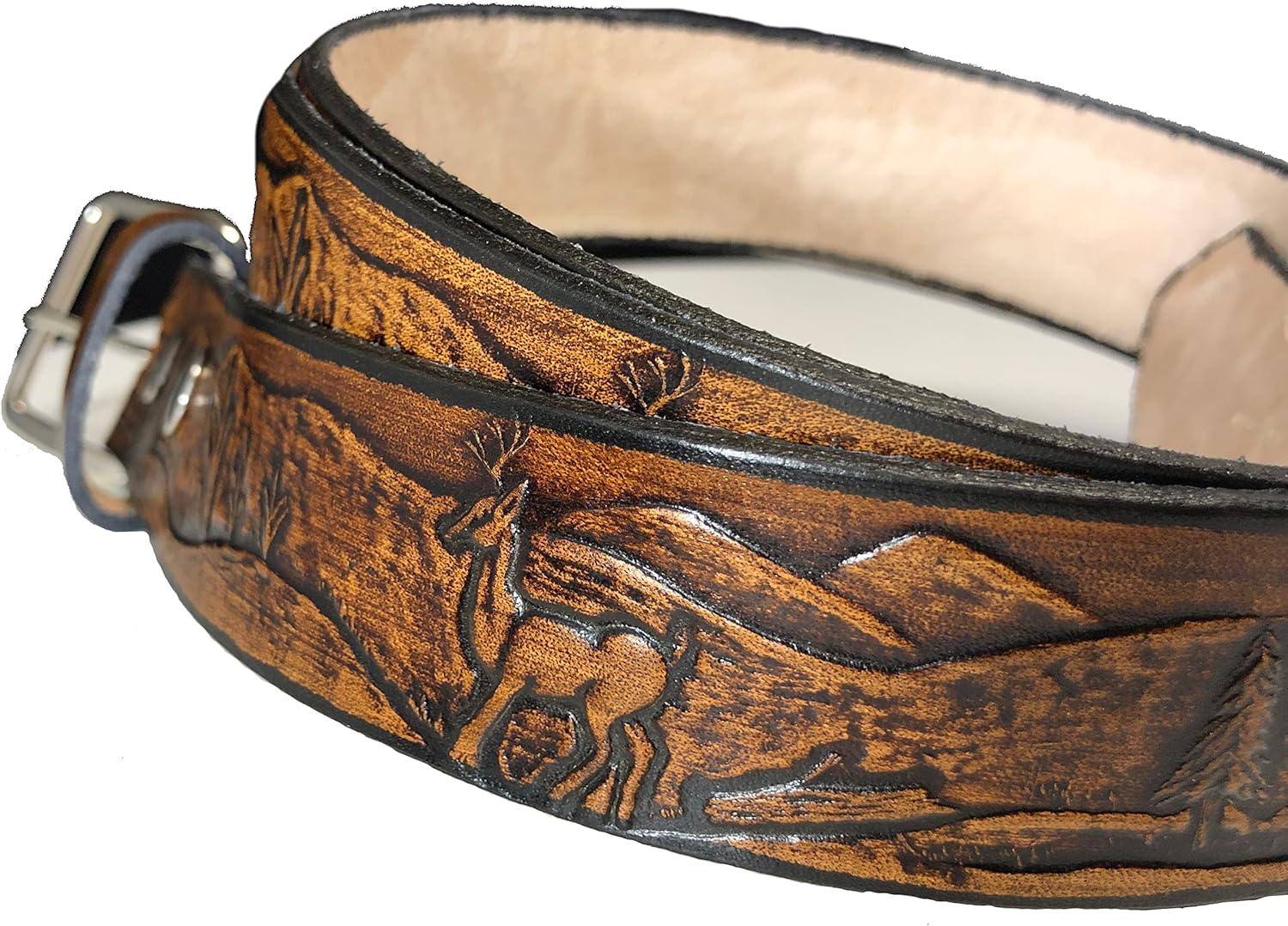 Brand new handmade 1 1/2" wide BELTS. They are all made by hand with the quality Leather. All of our belts are made from ONE SINGLE PIECE of quality leather which has been HAND TANNED in the U.S.A! NO CARDBOARD, NO PLASTIC AND NO GLUE! Our leather craftsman carefully hand picks all of the leather used in our products so you can be assured that you are receiving quality leather! All of our products have been skillfully HAND CRAFTED in Alabama. Belt are made weekly and are delivered to us every Friday. Our belts are thicker and heavier than those found in any department or camping store and are perfect for any occasion! Because they are made from ONE SOLID PIECE LEATHER, with NO FILLERS, SPLICES OR GLUE, they will carry more weight without sagging! BUCKLES ARE INTERCHANGEABLE. We recommend 2 inches over pant size. (Example: You wear a 34 pant order 36 belt) WE ARE NOT RESPONSIBLE IF YOU ORDER AN INCORRECT BELT LENGTH! IF THE BELT IS STILL IN NEW CONDITION, WE WILL EXCHANGE IT FOR A DIFFERENT LENGTH, HOWEVER YOU ARE RESPONSIBLE FOR PAYING ALL OF THE SHIPPING AND HANDLING FEES TO MAKE THE EXCHANGE. Our belts have a total of 5 holes in them allowing you flexibility.