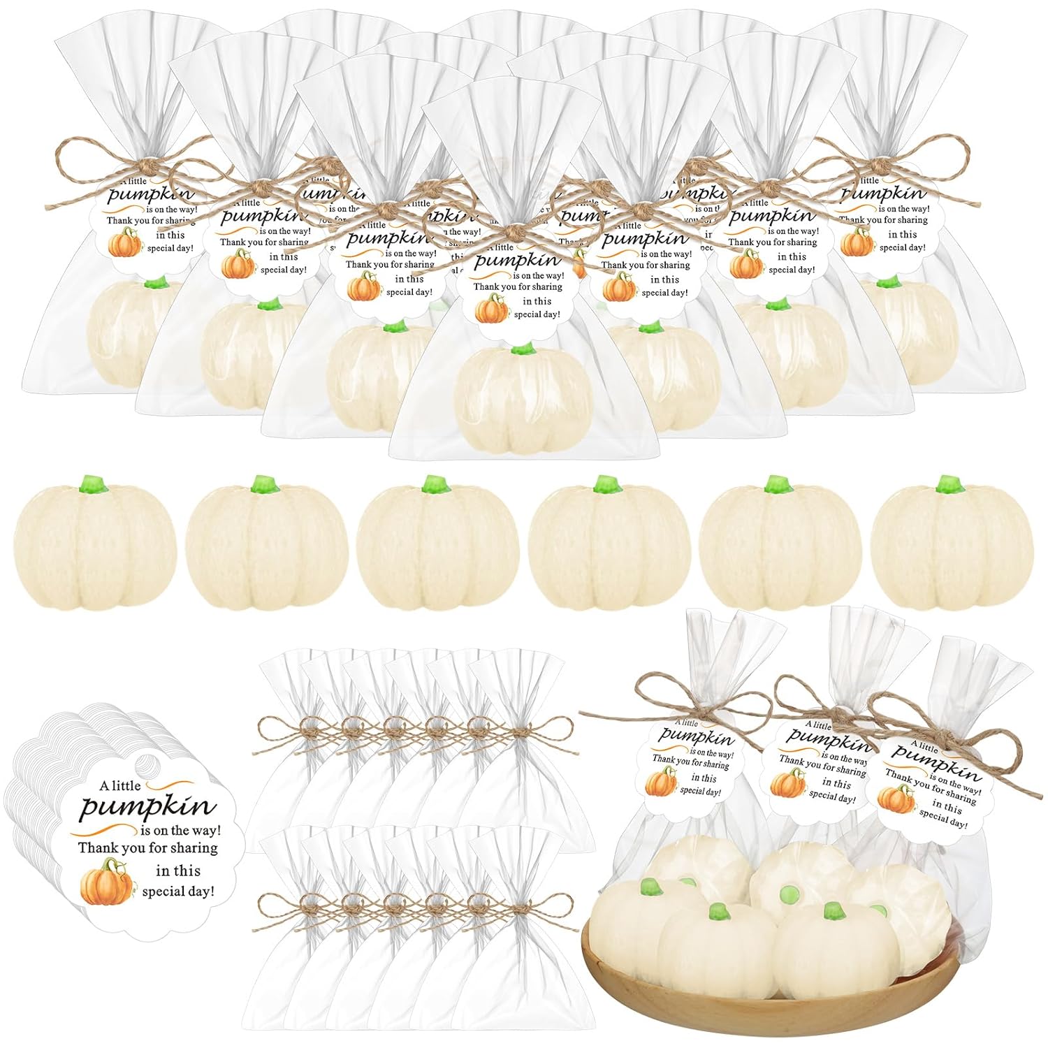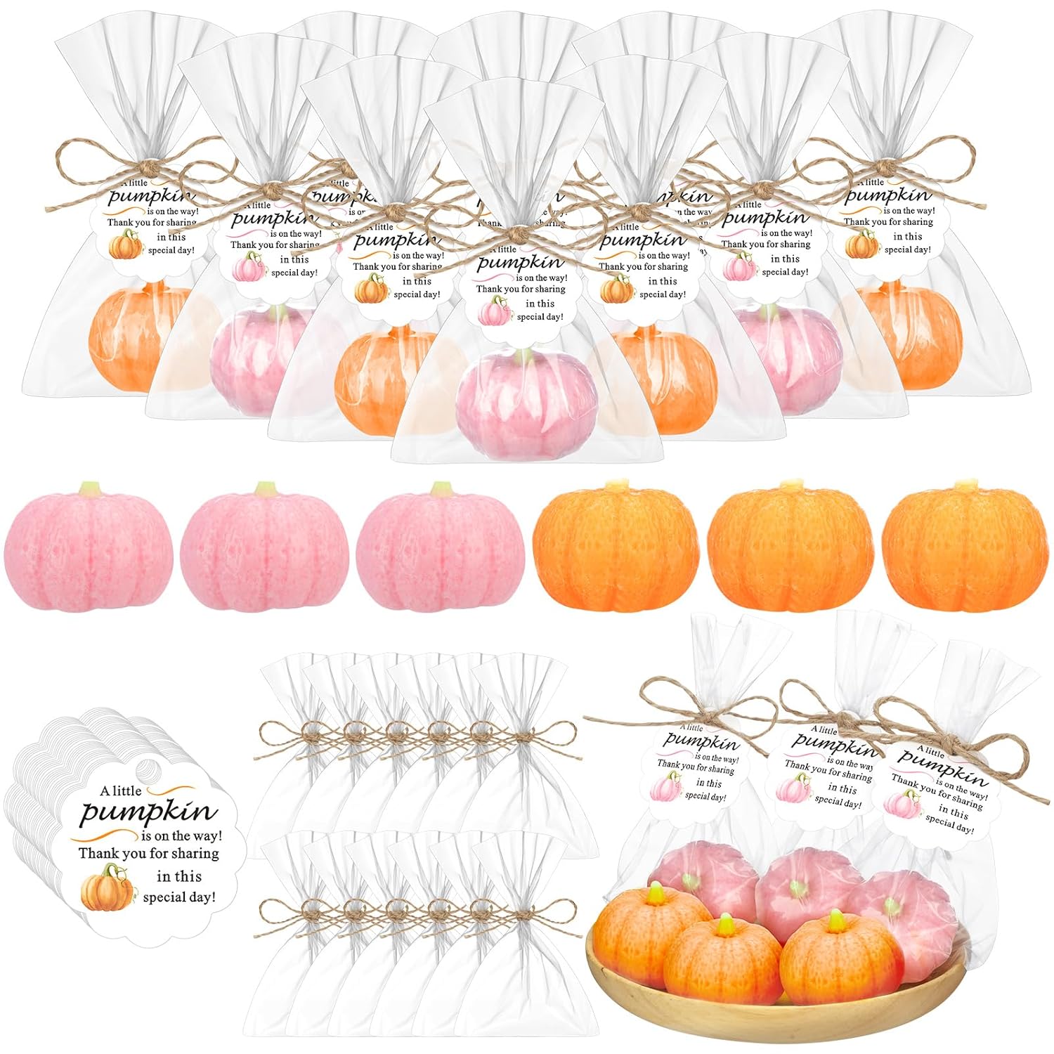 Features: Clean tool: Pumpkin shape soap, with dense foam offer you effective cleansing. Warm gift: Pumpkin baby shower favors are suitable for your friends, colleagues, relatives, neighbors, family members and other people you care about and love, they will be very happy to receive these gifts. Specifications: Color: colorful Size: The pumpkin soap is 1.77 x 1.38 inches. The diameter of card is 1.97 inches. Package includes: 40 x Pumpkin soaps 40 x Thanks cards 40 x Gift bags with string Notes: Manual measurement, please allow slight errors on size. The color may exist a slight difference due to different screen displays. For longevity, avoid storing in hot or humid environments.