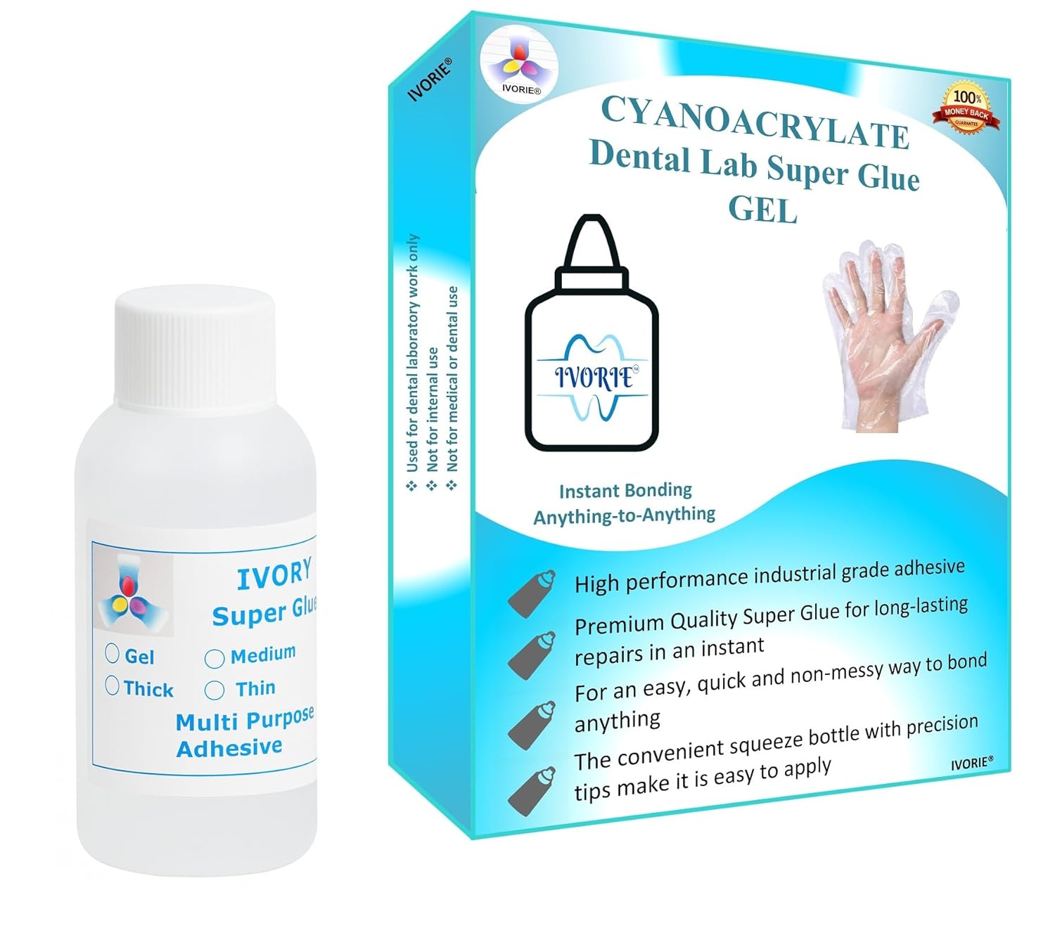 Used for dental laboratory appliances and tools only. Premium quality dental lab super glue adhesive. This product comes in original retail packaging of IVORIE. It comes with a lifetime guarantee offered by IVORIE for the life of the product. Package contents include instructions and warnings printed on IVORIE brochure. IVORIE is a registered trademark. Premium quality cyanoacrylate super glue. Lab tested for optimal performance. High performance industrial grade adhesive. It comes in 2oz bottle. Not for internal use. Not for medical use.