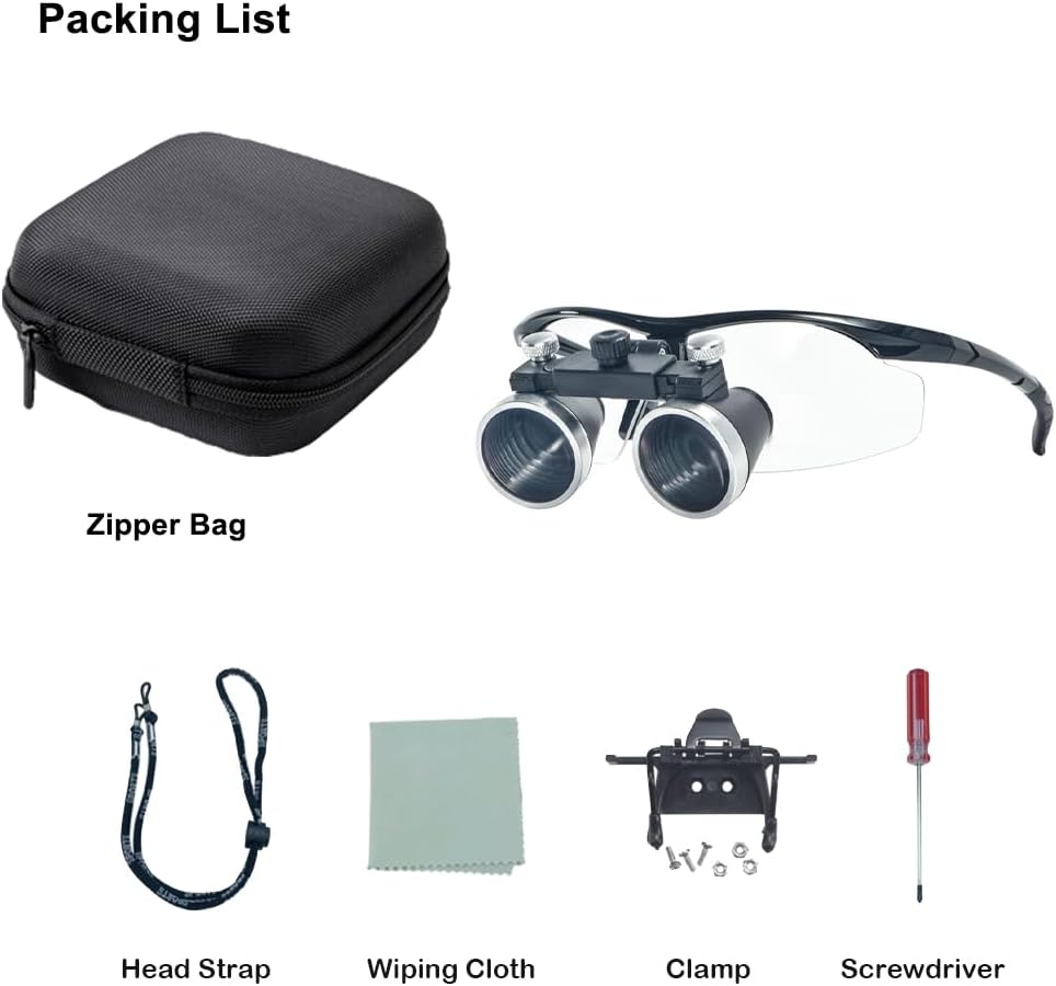 Magnification available for 2.5X and 3.5X; Working distance is 320 to 420mm;4 colors of frame for your choices