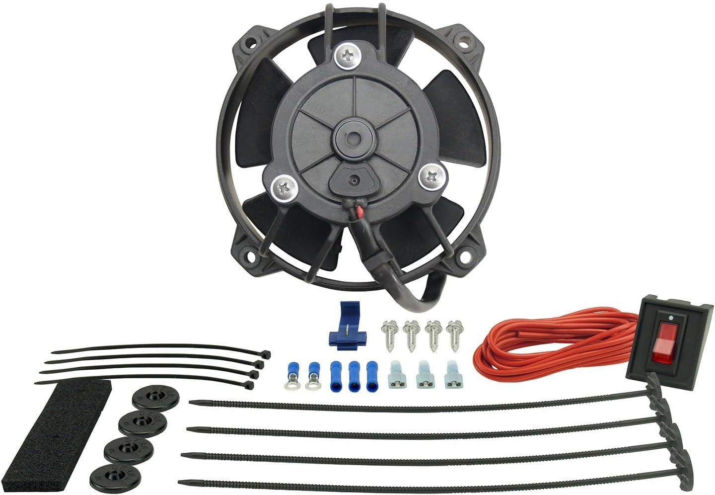 waterproof electric fan line uses 5 large, paddle style blades and due to its size a very versatile little puller fan. Though not reversible, it is popular in multi-industrial applications, from atv's to computers to audio equipment. Fan kit includes everything you will need for a manual switch installation.