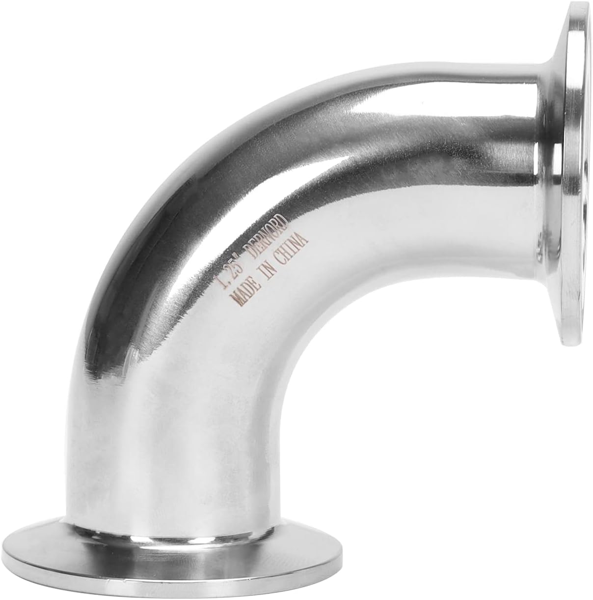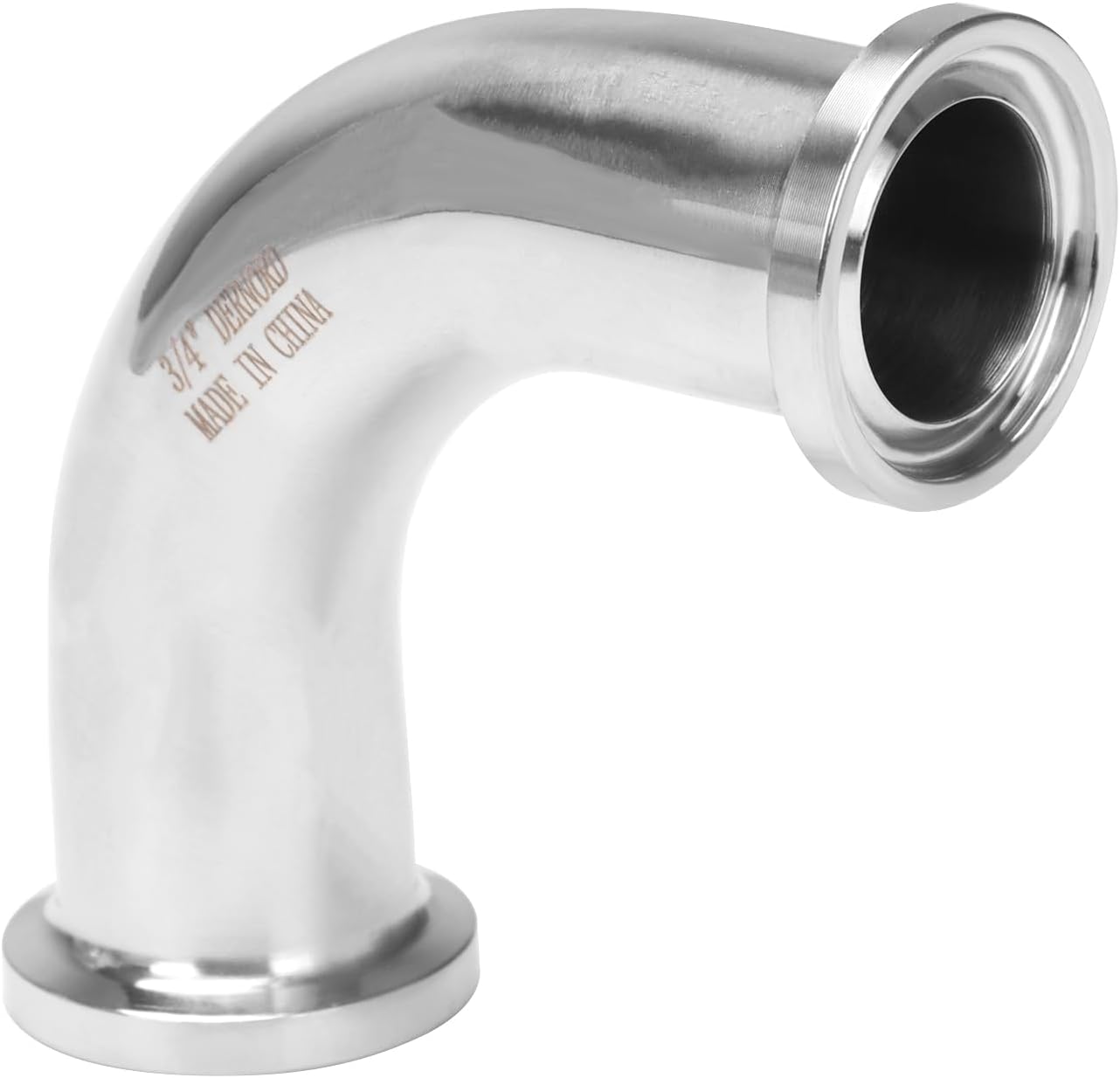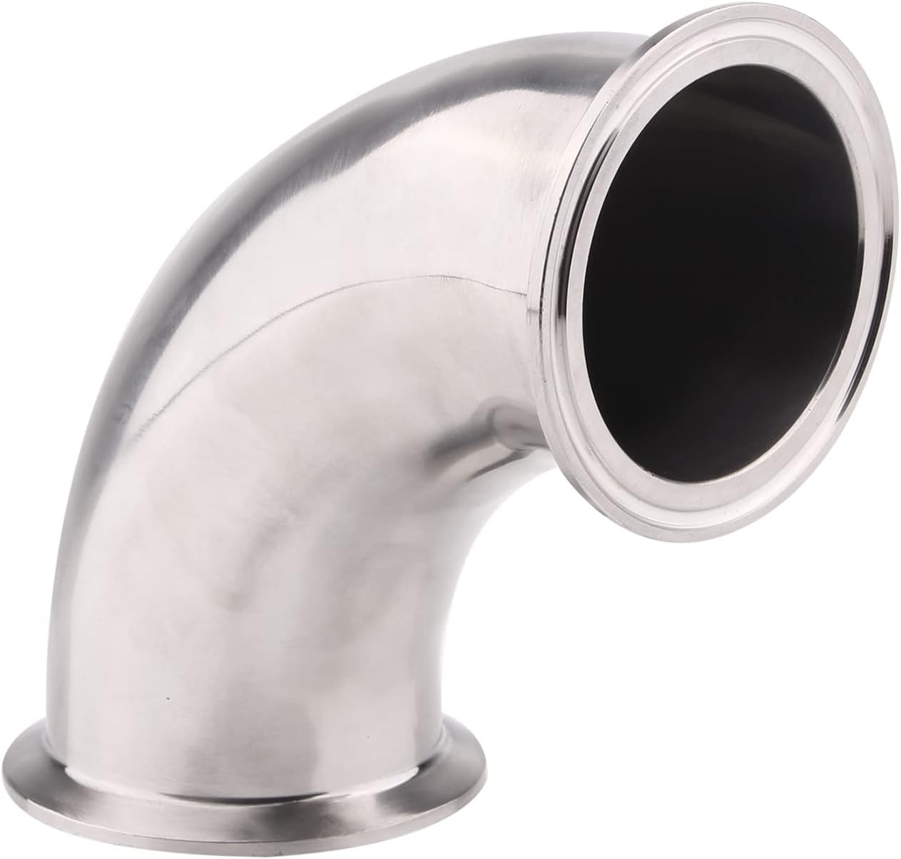 DERNORD series 90-degree clamp elbow sanitary fitting is made of stainless steel 304 and clamps onto tubing at both ends. This elbow fitting, also called an "ell," connects tubes at a 90-degree angle to change the direction of flow between pipes or tubes, providing a non-permanent seal with take-down access. NOTE: Pipe and tube fittings are components used for connecting, terminating, controlling flow, and changing the direction of piping in many different industries. Sanitary fittings are used in the food, beverage, biotech, pharmaceutical, and other sanitary process industries to transport fluids through pipe lines and are available in a range of materials, finishes, and shapes. When purchasing fittings, consider the application, as this will affect material type, shape, size, and required durability. Fittings are available threaded or unthreaded, in many shapes, styles, sizes, and schedules (pipe wall thickness).