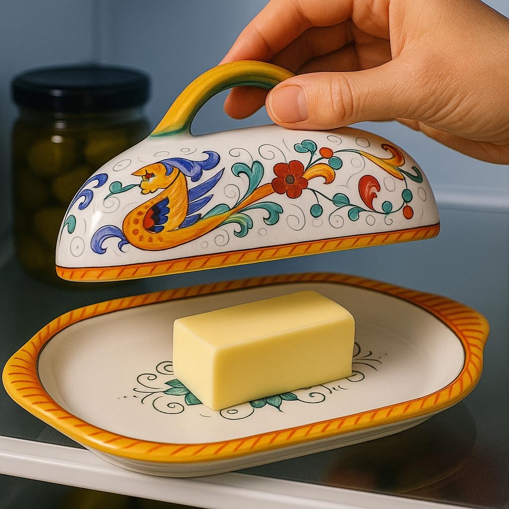 | Item Type Name | Deruta Italy by Gute | Raffaellesco Butter Dish | Handcrafted & Handpainted Italian Ceramics | Authentic Italian Pottery Handmade in Deruta, Italy |