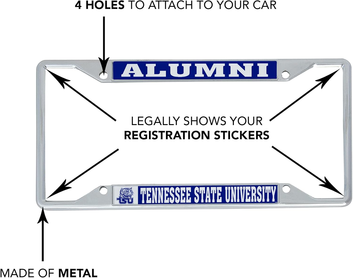 Are you looking for a high-quality licensed product that’s the perfect way to show your pride for your college, university, or institution? Our license plate frames are a perfect way to show your pride while serving a useful purpose. All of our license plate frames are made of a zinc alloy metal and all four corners of the frames are left open so your license plate frame registration stickers won’t be covered. Whether you want a stylish decoration or a gift for someone special in your life, we’re here to make sure you get nothing but the very best. We offer other quality licensed products, including lanyards, keychains, license plate frames, and flags.