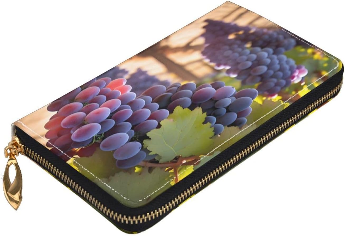 Desert Grapes ck of rummaging through a chaotic bag for cards and cash? Meet our Long Zip-Around Wallet for Women the ultimate organizer that looks as good as it works. Designed for the modern woman who refuses to choose between style and sanity, this wallet tames your essentials into one sleek, secure package. We've covered all bases: 12 card slots (goodbye, crumpled receipts!), multiple bill compartments, a zippered coin purse, and even a spot for your checkbook. No more 'where did I put my debit card?' panic attacks everything has a home. The full zip-around closure acts like a tiny vault, keeping your stuff safe while you're out conquering the day. And that robust metal zipper? Built to last longer than your New Year's resolutions, so it glides smoothly for years. The wallet's advanced microfiber leather is a triple threat: soft as a cloud, eye-catching with double-sided prints, and tough enough to handle spills, scratches, and life's little messes. Eco-friendly, too because looking good shouldn't cost the Earth. Practicality meets beauty in its slim profile, which slips easily into your tote or handbag. But wait, there's more! The attached wrist strap turns it into a chic clutch perfect for date nights or quick coffee runs when you'd rather not lug a giant bag. Need a gift that's both thoughtful and actually useful? This wallet's got you. With top-tier function, luxe materials, and a design that turns heads, it's a present they'll use (and love) every single day.
