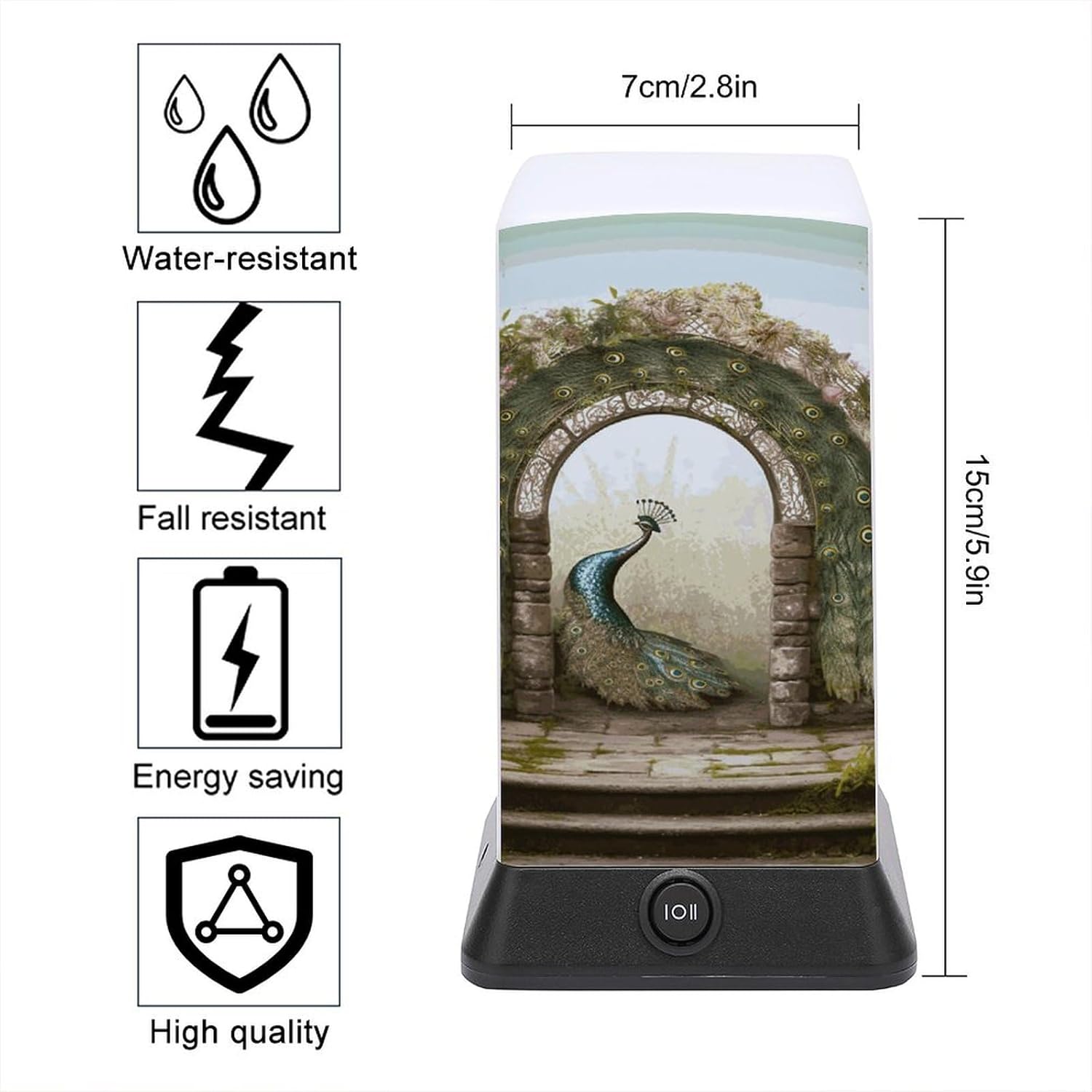 Made of durable plastic, this Garden Arched Door Peacock printed small bedside table is a must-have for modern living. It features dual brightness adjustment. When you stay up late reading in your study, switch to the high setting for crisp, bright light. In the bedroom, the low setting provides a soft glow to guide you on your nighttime errands without disturbing your sleeping partnerThis mini lamp has uses beyond the home. In bars and cafes, its warm, inviting light creates a welcoming atmosphere that keeps customers coming back for more. In the kitchen, it provides the lighting for a late-night snack, and on your desk, it ensures you have light while you work or studyDesigned with portability in mind, this cordless lamp is easy to move with its lightweight construction and battery operation. Whether you're rearranging your living room, working in the garden, or traveling, it'll light your way. Simply load up with 3 AAA batteries (not included) and you're ready to goNot only is it powerful, its sleek design makes it a stylish addition to any room. It blends in with a variety of home decor, serving as both a lighting source and an elegant decorative pieceThis table lamp is an ideal gift. Its classic long shape and practical functions make it a great gift for friends and family on birthdays, holidays or any special occasions