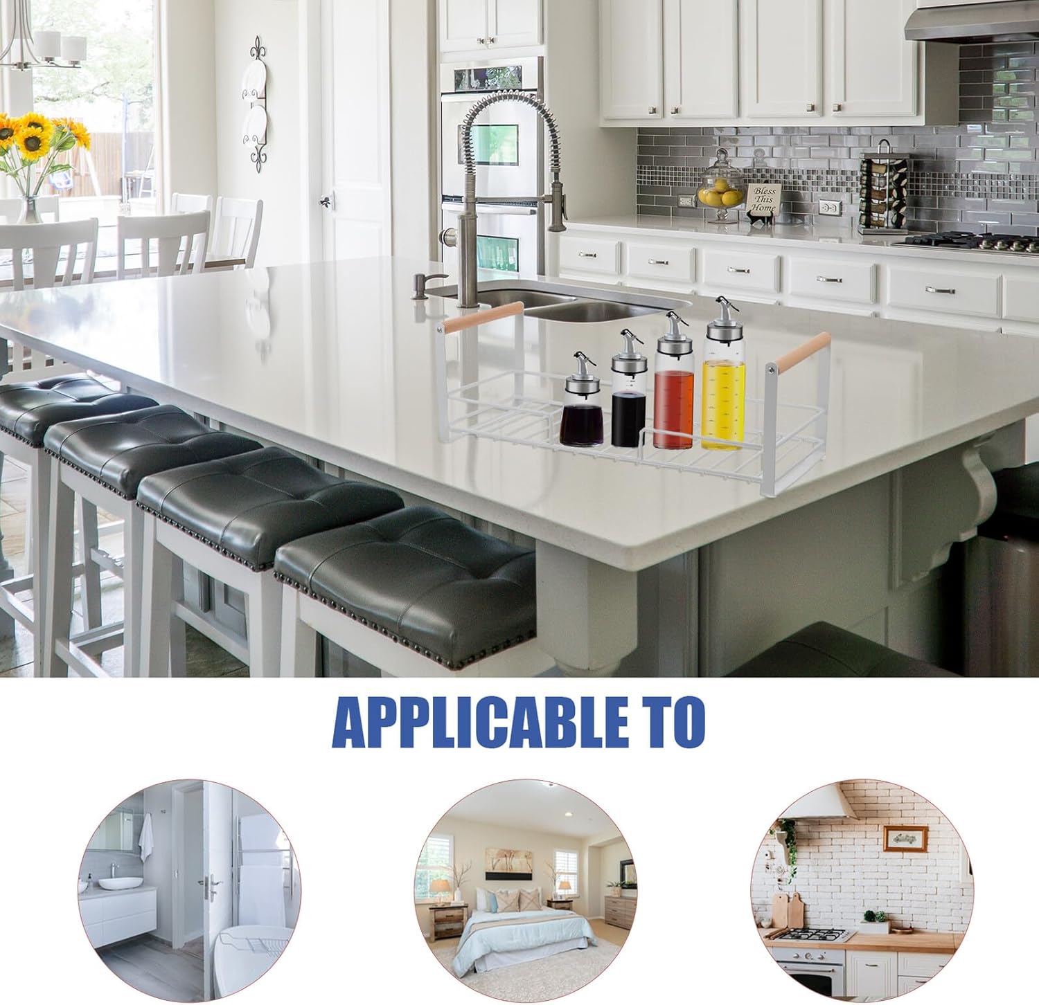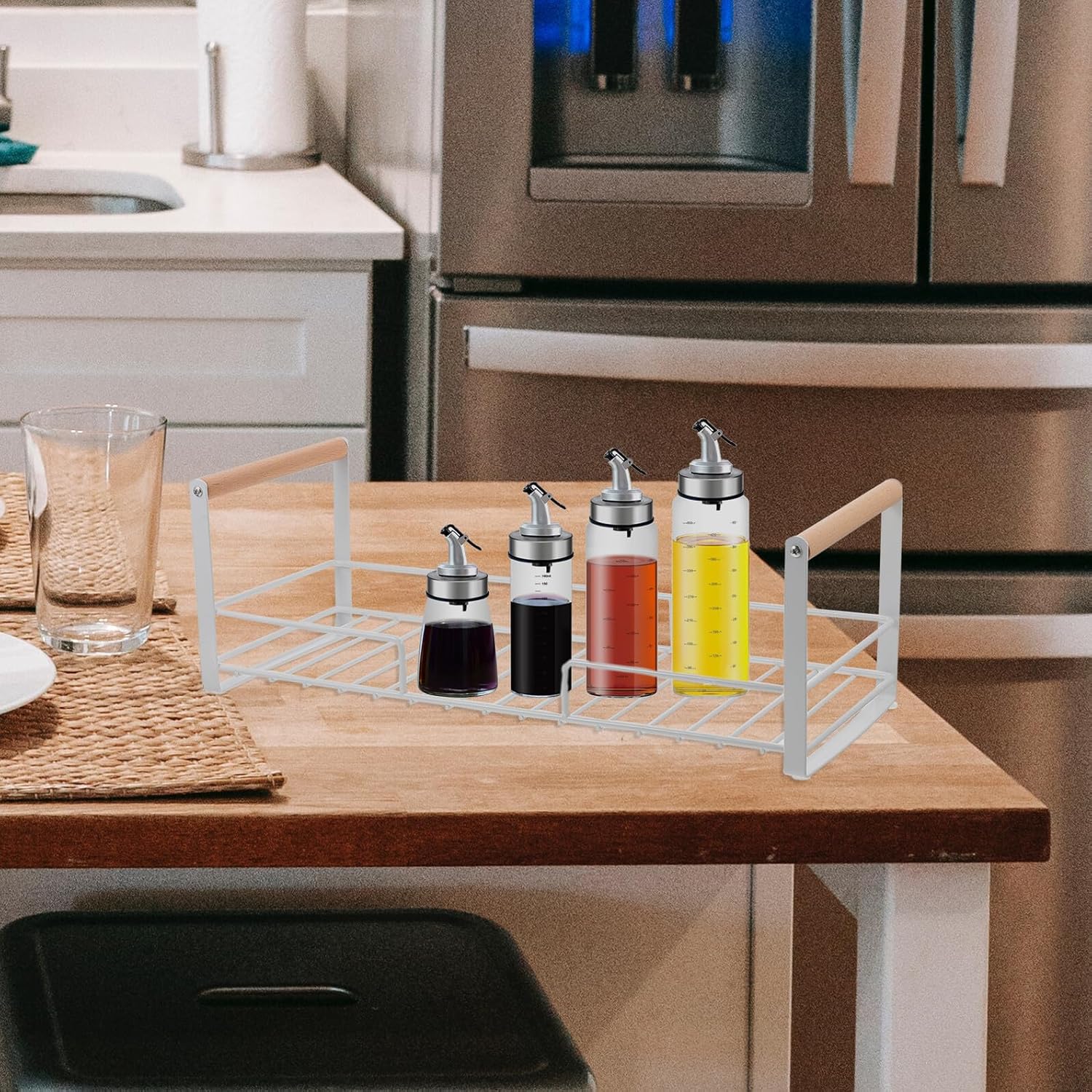 Package List 1 x Spice Rack Features -Product Info:Kitchen storage rack -Material:Carbon Steel, Beech -Color: white -Size:41.00X16.00X14.00cm/16.11X6.29X5.50in - Manufactured with high-grade material, sturdy and practical for a use. - This Kitchen Spice Rack owns the strong wear and break resistance ability, very iron seasoning rack. - You can use our Kitchen Spice Shelf to drain household items and condiments, which is really practical countertop spice rack. - It uses a guardrail design to prevent tableware from accidentally falling, you can use with confidence kitchen sundries organizer. - The storage shelf is in workmanship, beautiful and practical, can match your modern designed kitchen perfectly condiment bottle rack.Goods Informationkitchen seasoning organizer Do you want to have a multi-functional storage rack for your kitchen? Then, our multi-function Spice Rack is carefully prepared for you.desktop seasoning rack Hollow design makes it keep dry and avoid corrosion.kitchen countertop rack Enough space to store your household items.convenient kitchen rack Made of , it is high-class and practical for a use
