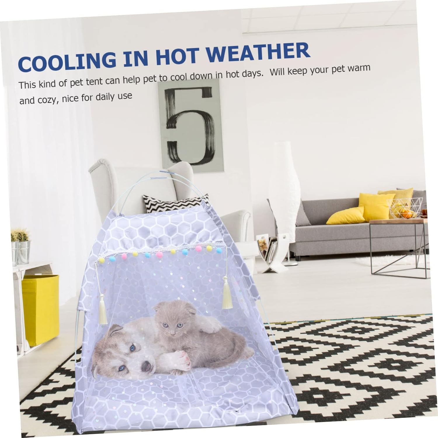 Package List 1 x pet tent Features -Color:Multi Dog Nest House -Material: Polyester, PP cotton, glass fiber Pet Shelter -Size: About 60.00X60.00X62.00cm/23.58X23.58X24.37inch Pet Tent - Provide a experience for your small pet, very Pet Supplies. - Easy to and maintain, save your time and efforts . - Compact size, suit to put it at any place, occupy less space Dog Summer Tent. - Fit well with most home decoration, add more beauty and charm to your room Sleeping Tent. - Help to increase pet's sleep quality, as while optimizing their well-being Dog Supplies.Goods DescriptionCat Nest Provide a for your pet.Pet Folding Tent The sleeping tent is an place for the pet to play and rest.Pet Sleeping Tent This pet tent can keep your pets and comfortable, which is well-made of materials for and to use