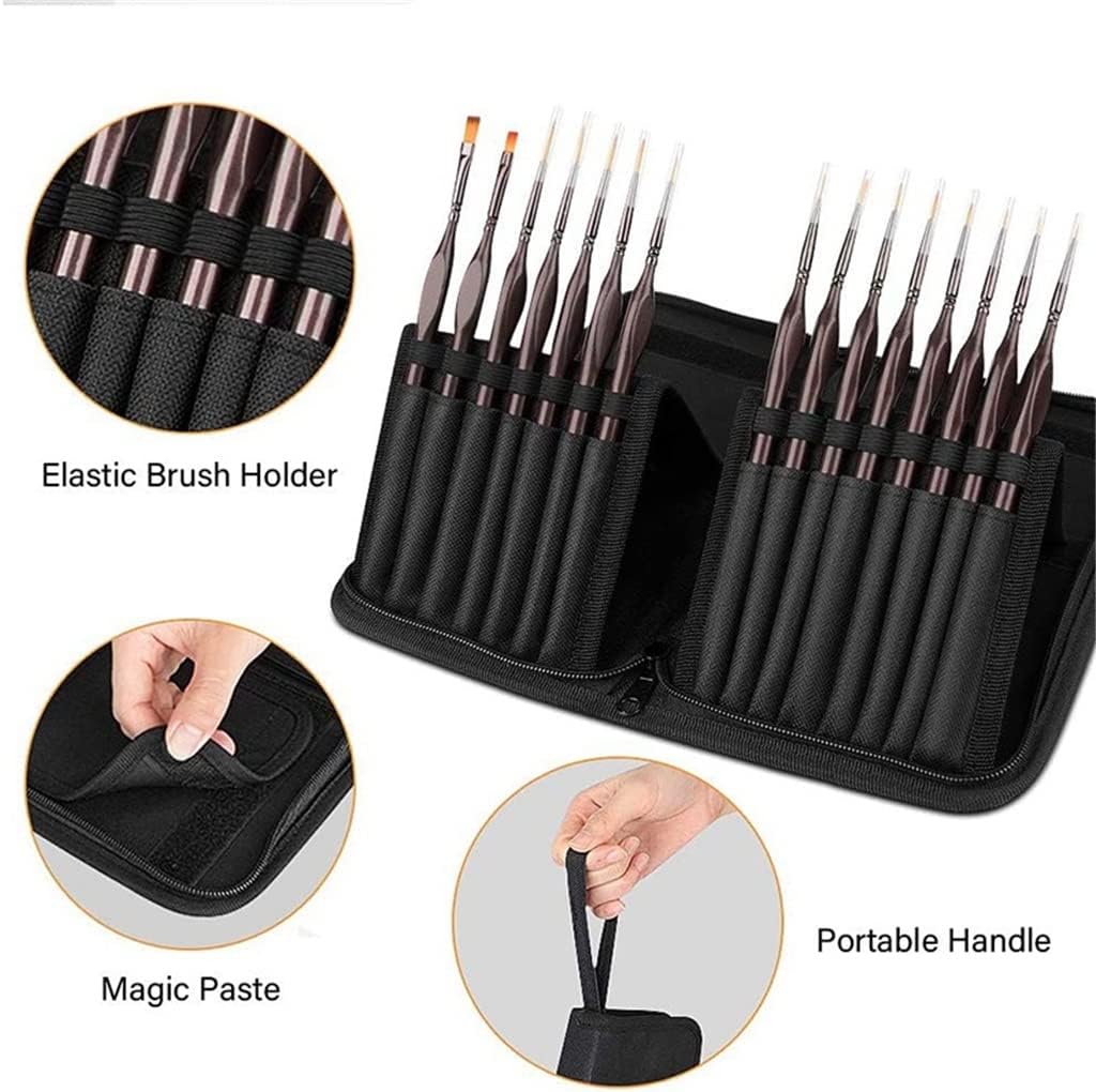 Totally 15pcs detail paint brush, for oil,acrylic painting,watercolor,nail,body,face. Paint Brushes: tipped miniature brushes allows you to do detail painting precisely to reach tight, small spots and tiny points such as wildlife, botanical, portraiture, doll, illustrations, model car, ships and airplanes, or mini detailing fantasy figurines.Comfort and Balance:With ferrules,and sturdy triangular handles,no bristles will be left to your paint,you can on your detail painting with creative.A must-have for hobby artist.Easy to Store and Carry:A handy zipper case is convenient to storage your brushes,it can also be used as a -up stand while you are painting.It is also for carrying outside in your backpack or handbag.Specification: Material: WoodSize: about 26cmPackage Include: 1*Painting materialsIf you have any questions about the product, please contact me, we will contact you within 24 hours and give you a satisfactory answer.Gift for friends and family who love painting.