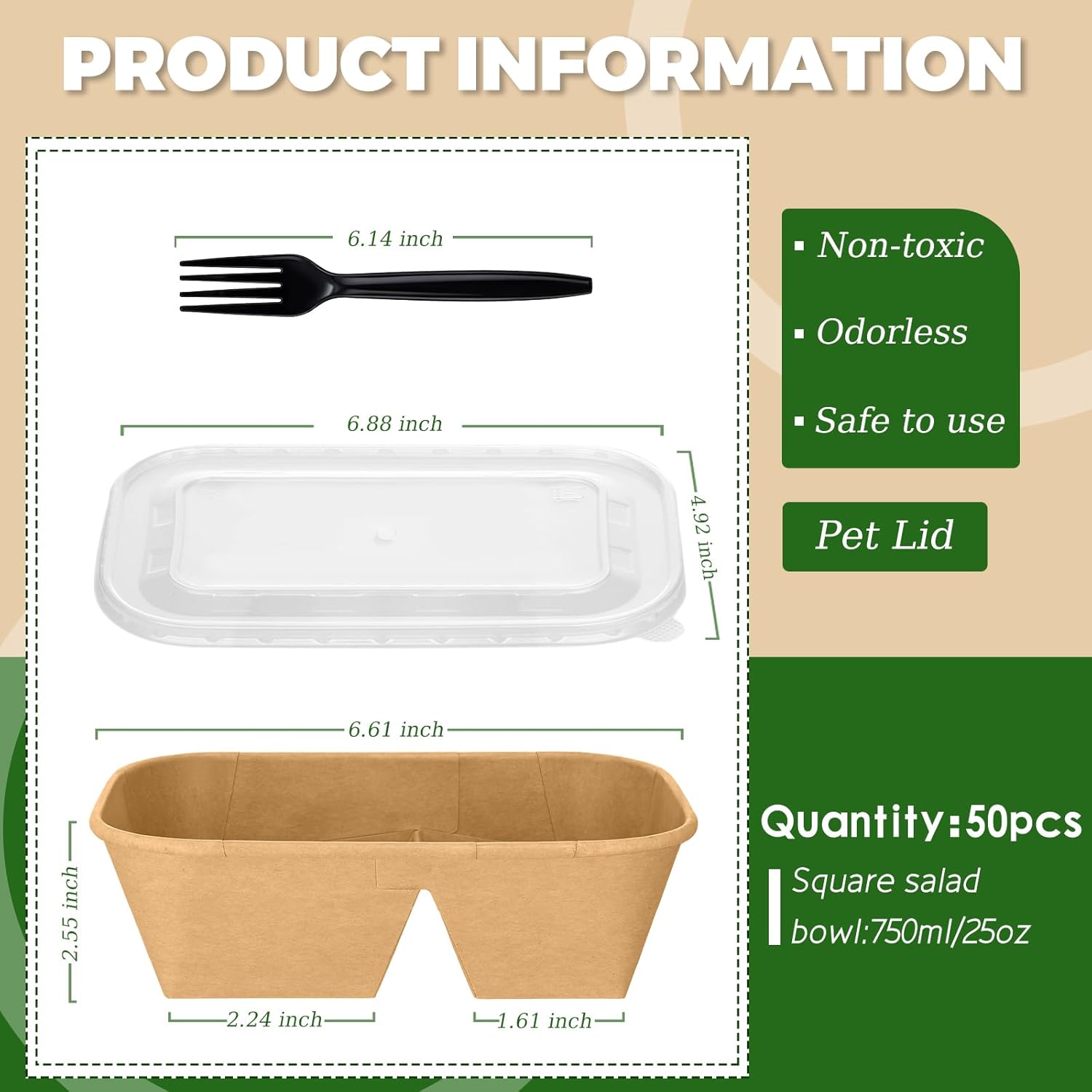 | Included Components | Disposable Kraft Paper Bowls 2-Compartment, Forks, Lids |