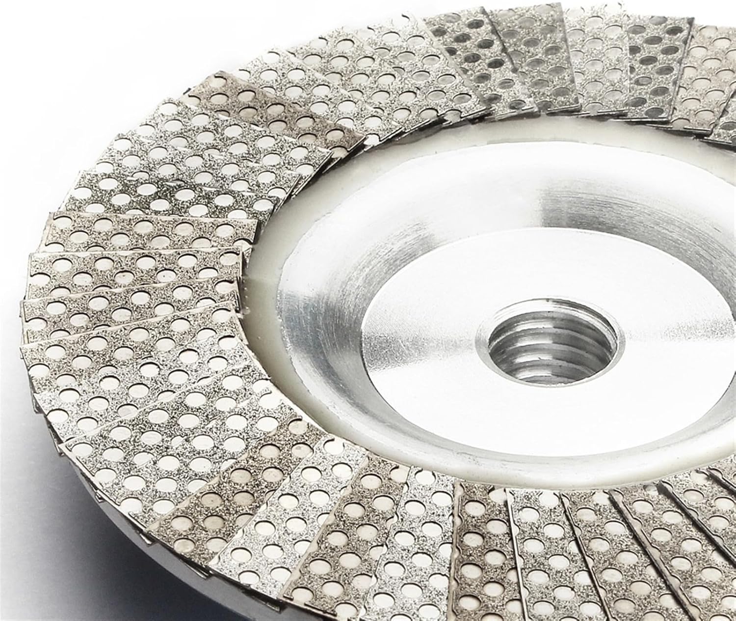 Diamond metal flap disc with distinctive craft, it is made of metal bonded diamond flaps, this makes the disc very aggressive.Full body aluminum adapter, special honeycomb type is very good to heat dissipation, can adapt to a variety of dry and wet environments. Material removal and speed of the metal flap disc is equal to that of cup wheels, however, the vibrations of the machine during use are much less.Extra-long lifetime, distinctive diamond electroplated craft, diamond will never fall offSave a lot of loading and unloading timeWidely used: natural stone, ceramic, tiles, engineered stone, concrete, composites, glass, and many moreFast material removal! Comfortable and smooth grinding, reduced hand and arm vibrations compared to cup wheelsCan be used in dry application.