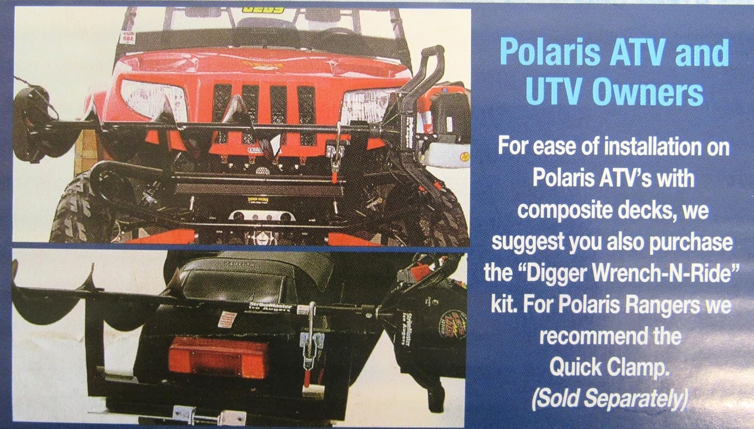 Ice auger carrier for four-wheeler UTV and snowmobile. Made from high strength alloy aluminum - super durable and light weight Scratch resistant mounts. Adjustable over-center shaft clamp to securely hold any brand of auger.