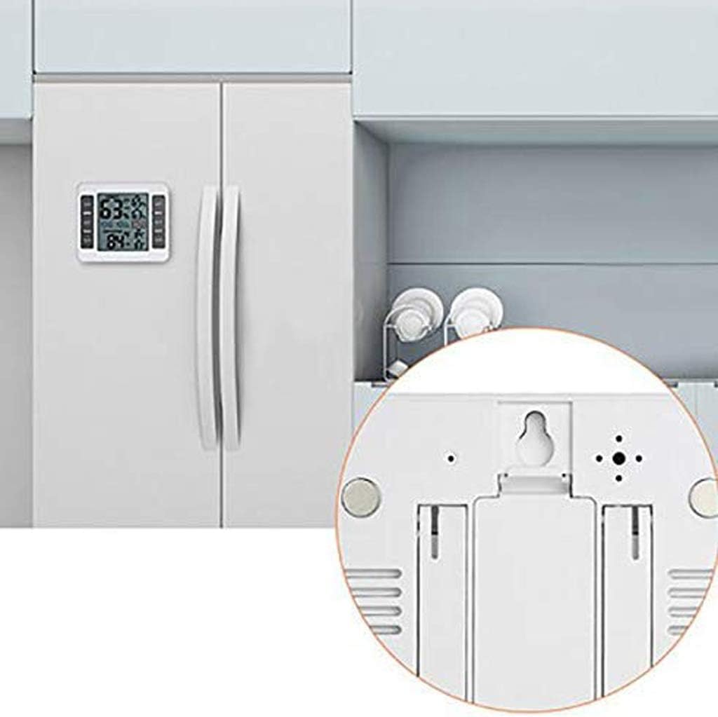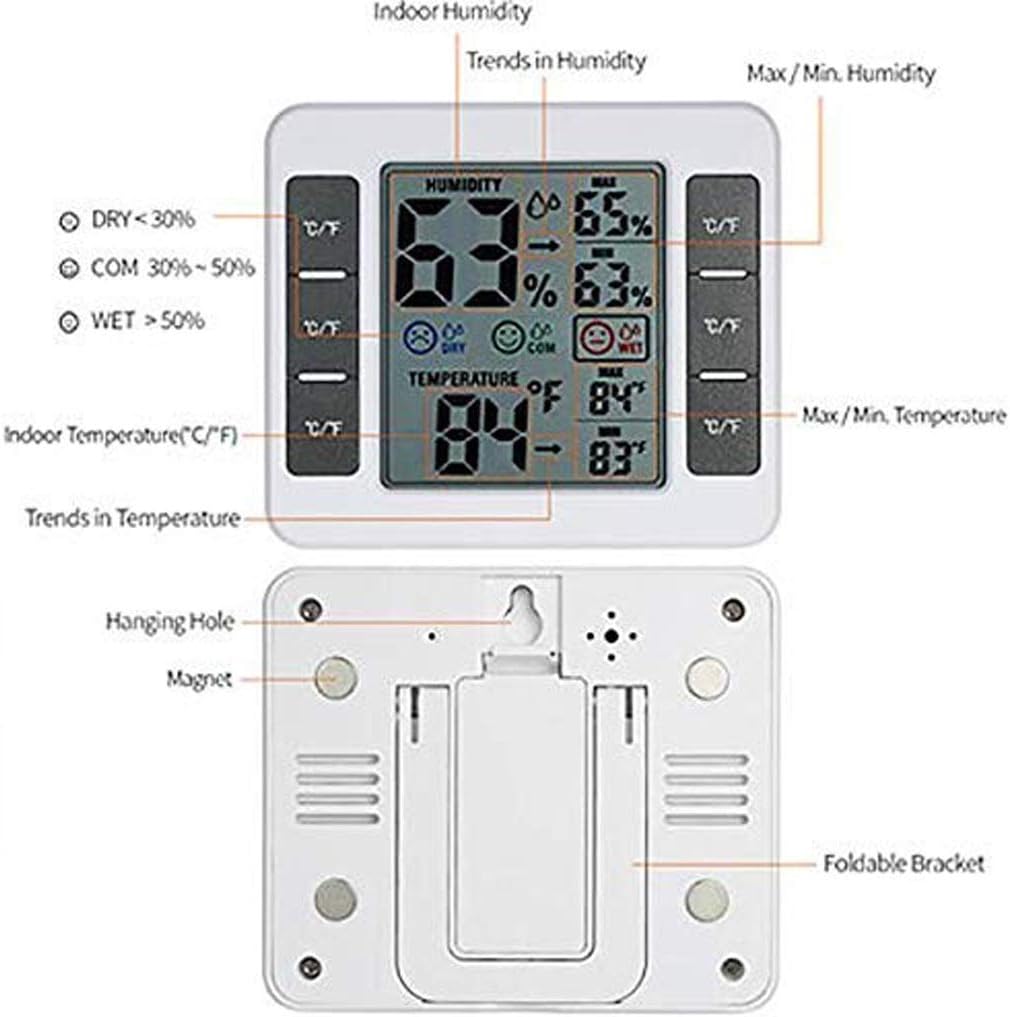 Product specifications: Material: ABS Product color: white Display: 61 * 44mm LCD Temperature measurement range: 0~50°C/ 32~122°F Temperature accuracy: ±1°C/±1.8°F Temperature resolution: 1 ° C / 2 ° F Humidity accuracy: ±5% RH Humidity resolution: 1% Function: indoor temperature and humidity, maximum and minimum display, °C/°F switchable, 3 kinds of comfort indication Power: 2 * 1.5V AAA battery (not included) Item size: 98 * 85 * 22mm / 3.8 * 3.3 * 0.9in Weight: 90 g / 3.2 oz Light shooting and different displays may cause the color of the item in the picture a little different from the real thing. The measurement allowed error is +/- 1-3cm.