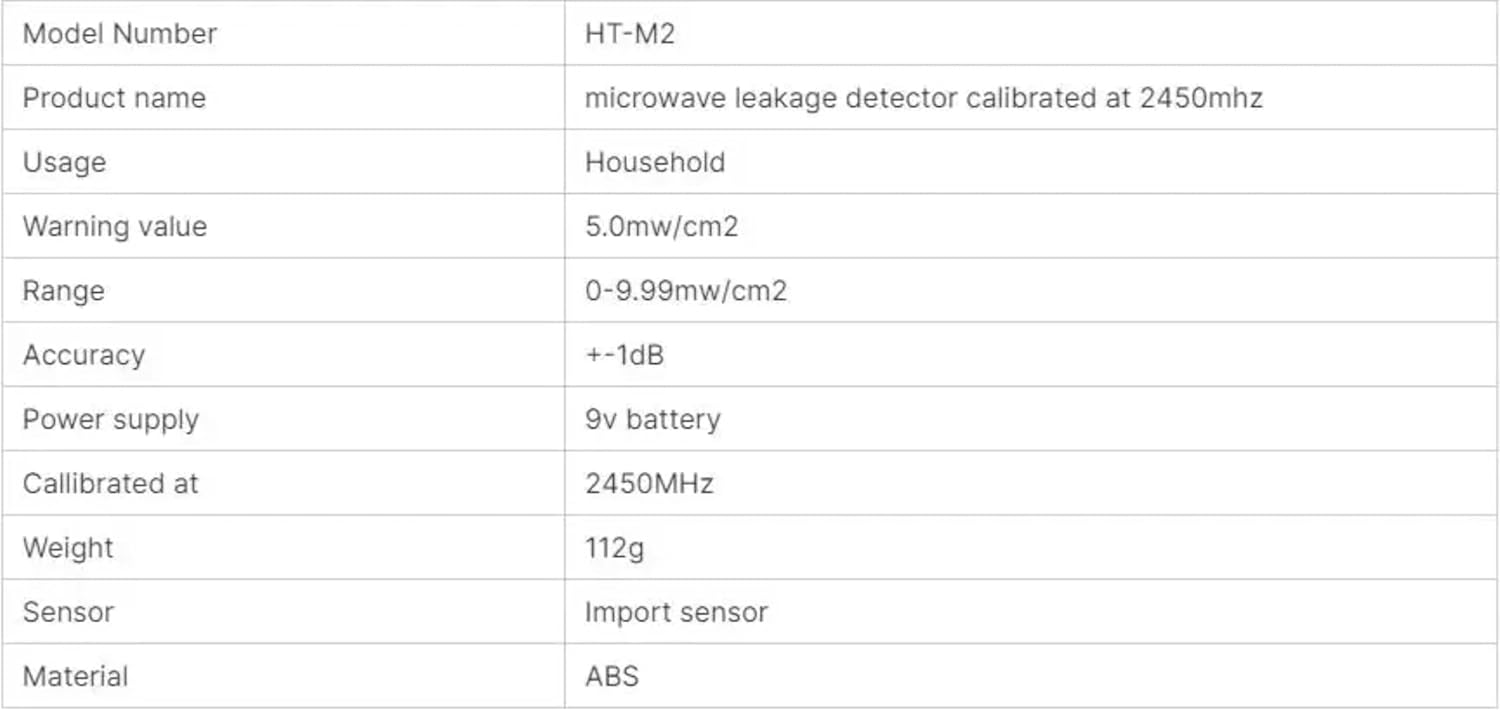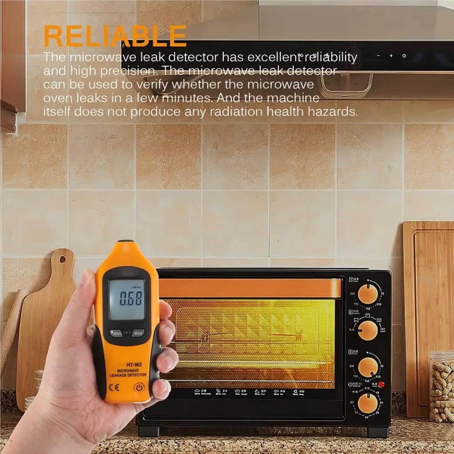 The Microwave Leak Detector is designed for high sensitivity and accuracy, with an impressive precision of ±1dB, capable of detecting microwave leakage within the range of 0-9.99mw/cm². If the detected microwave value exceeds the normal threshold, the device alerts you with a buzzer and a flashing red light. Its simple operation requires no recalibration, featuring a backlit display for clear visibility of results, along with minimum/maximum data display and data hold functions. Powered by a 9V battery, the EMF Meter is ready for immediate use. Testing is straightforward: place a cup of water in your microwave, run it at full power for one minute, and then use the detector to check for leaks around the door seal, glass, and back. This user-friendly device is ideal for detecting EMF radiation from a variety of sources, including magnetic fields, electric fields, televisions, computers, microwave ovens, mobile communication signal towers, low-frequency electrical appliances, ghost hunting, WiFi equipment, and medical devices.