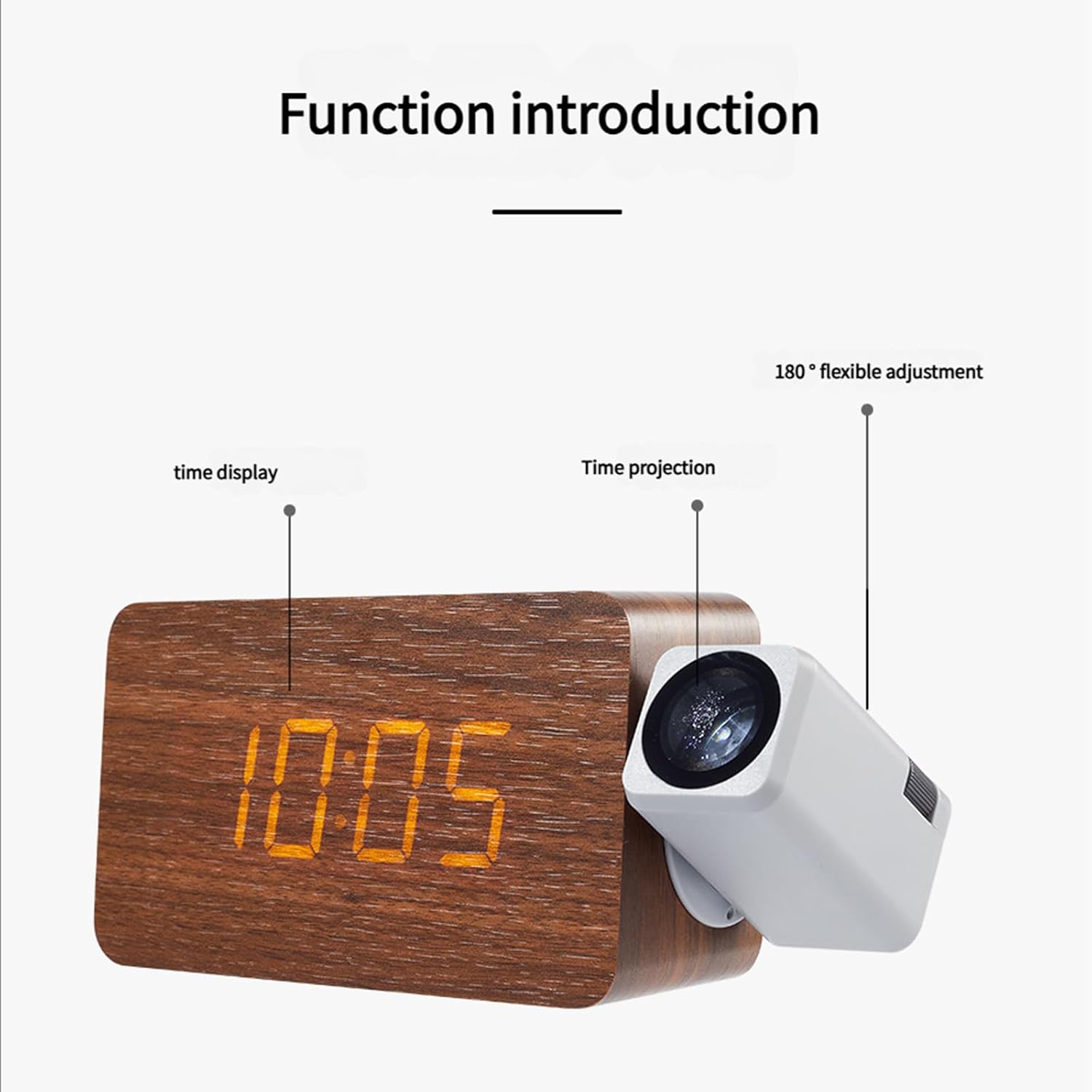 Digital Projector Alarm Clocks For Bedroom Plugs In LED Display Clock With 180° Projection On Ceiling Wall Duals AlarmsFeatures:Projection Clock Versatility This projection alarm clock seamlessly switches between time and what day displays, making it the perfect projection clock for bedroom ceiling 180° Projection Clock Rotation: The projection alarm clock's full rotation ensures perfect projection clock alignment on any coverings. Position this projection clock for bedroom ceiling viewing from any where in room.Multi Display Clock displays Clock Time, Alarm Time, the Day of the week. night light for easy time reading at nightWonderful gift,sweet warm friend family and yourself.There optional,choose your needSpecifications:Materials: WoodenStyles:01,02Color:walnuts,Wood,Black,White,GreenPackage Includes:Projection Clock for BedroomNote:Please allow 1-2cm errors due to manual measurement. Due to the differences betweeen different monitors,the picture may not reflect the actual colour of the item.