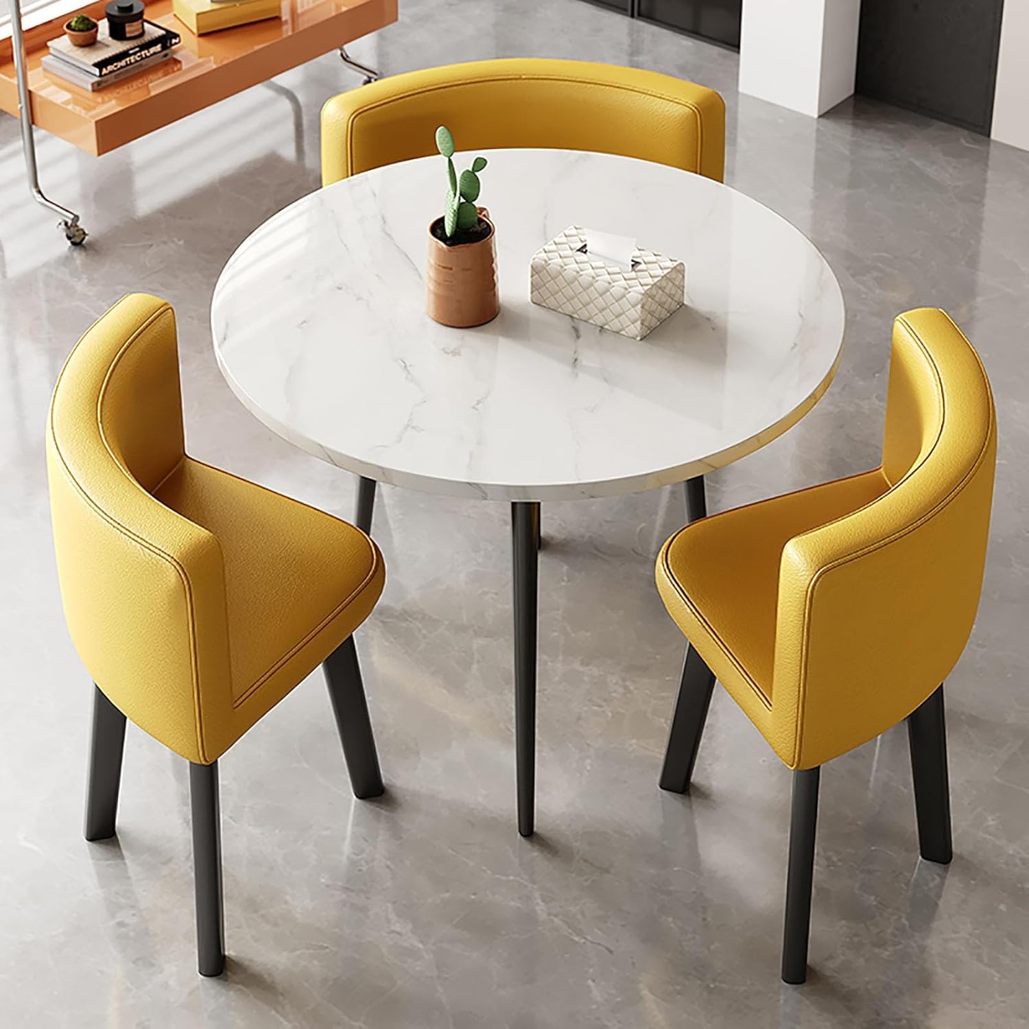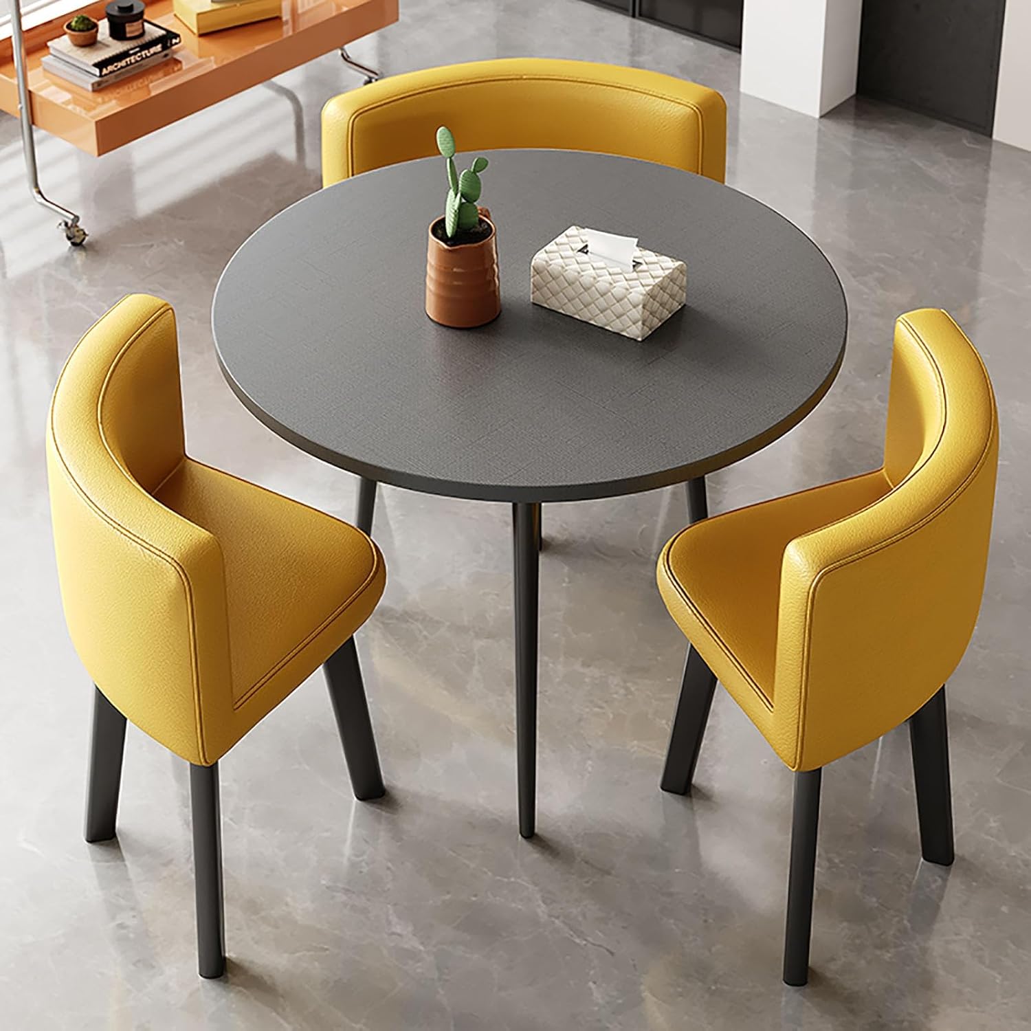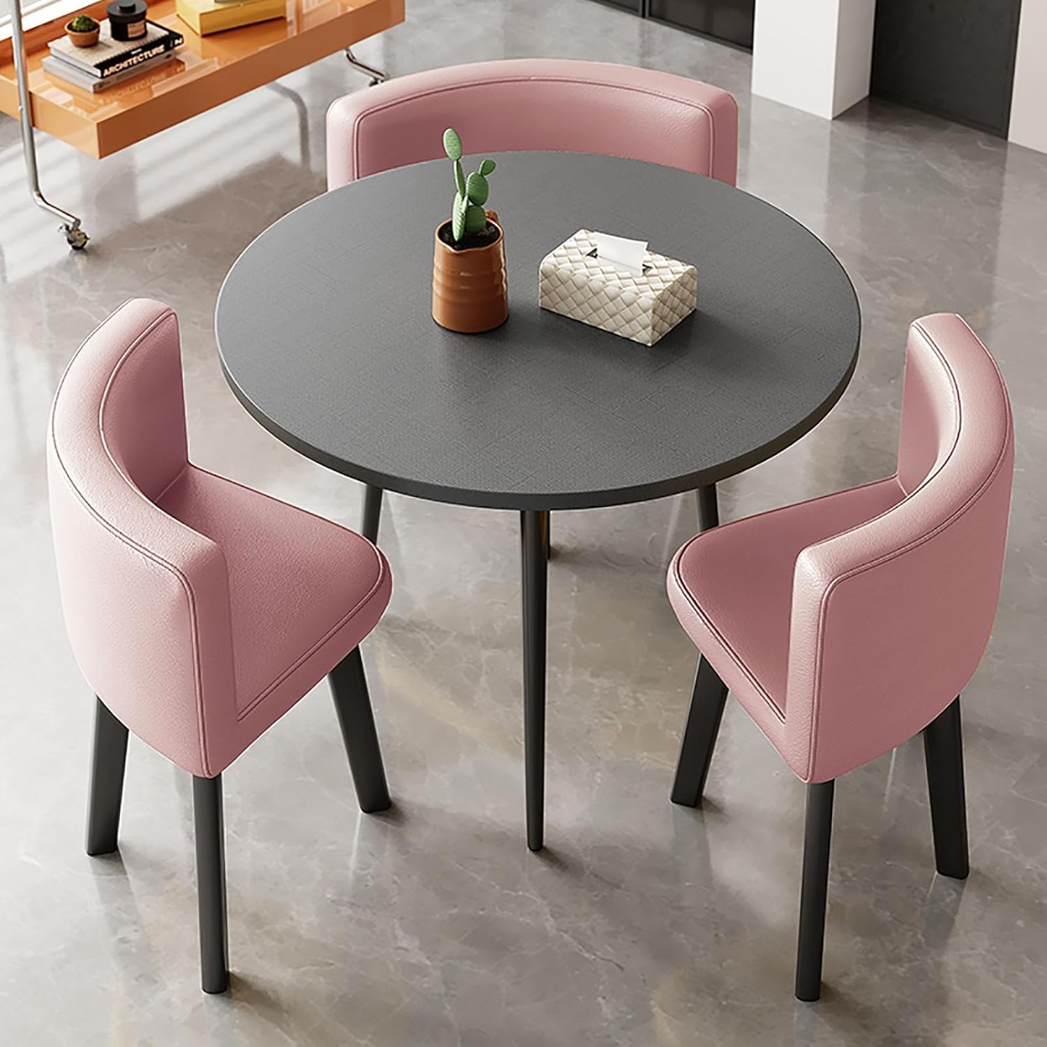 Office Negotiation Table and Chair Combination Leather Modern Conference Table with Chairs Dinning Room Modern Casual Coffee Table SetThis modern casual coffee table set is designed to elevate your dining room or living area, featuring a sleek leather finish that complements contemporary decor. Whether you’re hosting a casual brunch with friends or engaging in important office negotiations, this versatile table and chair combination meets all your needs.Crafted with a focus on comfort and practicality, the leather upholstery adds a touch of luxury while being easy to clean and maintain. The set includes a spacious round table that comfortably accommodates family meals or meetings, along with plush chairs that offer exceptional support for extended seating. Ideal for living rooms and kitchen balconies, this dining set adapts effortlessly to any setting.One of the standout features of our Round Dining Table and Chair Set is its space-saving design. The round shape allows for optimal use of space, making it perfect for smaller homes, apartments, or cozy dining nooks. You can enjoy your meals without feeling cramped, and when not in use, the set can be easily repositioned to suit your needs.Assembly is a breeze with our easy-to-follow instructions and included tools, ensuring you spend less time setting up and more time enjoying your new dining space. The combination of modern aesthetics and practical features makes this dining set a must-have for those who appreciate both style and convenience.Notice:Slight color variations may occur due to display differences.Product dimensions may have slight errors due to measuring tools and methods.Decor elements shown are not included in the package.