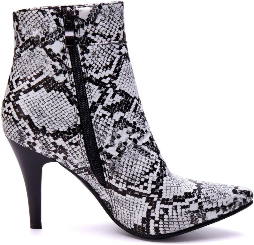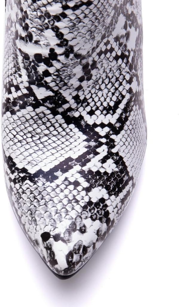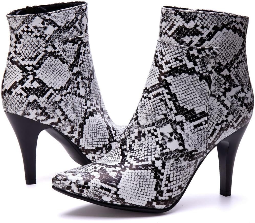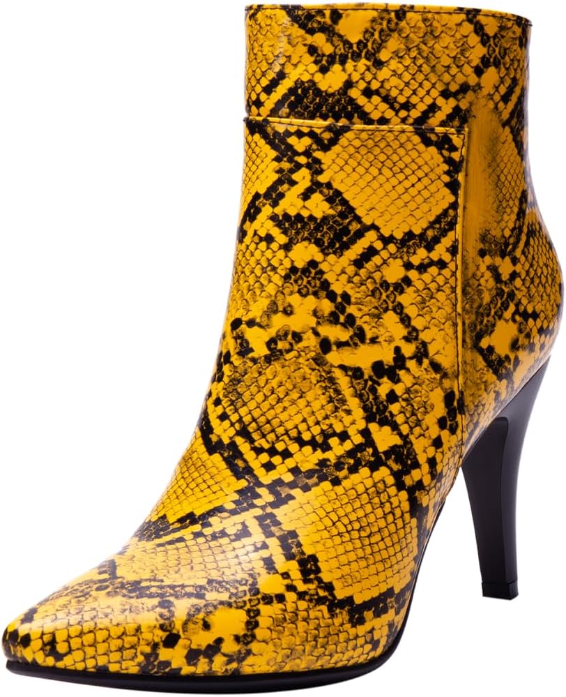 Snakeskin Boots Pointed Toe High Heel Stiletto Booties Pointy Toe Ankle Boots--Giving you a stylish and comfortable experienceBOUT THE PRODUCTS:Material: PUHeel Height: 3.15inchesToe Type: Pointed ToeColor: Black,Orange,Yellow,Green,Neon Green and BrownSize: 4.5/5/5.5/6/6.5/7/7.5/8/8.5/9/9.5/10/11/11.5/12/13/14snake boots women design.Wear the snakeskin boots women on any occasion, you are definitely the most eye-catching one.