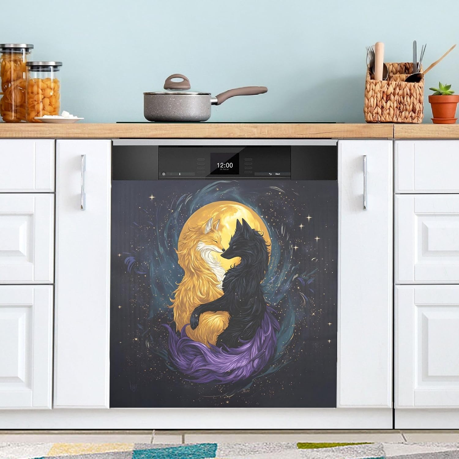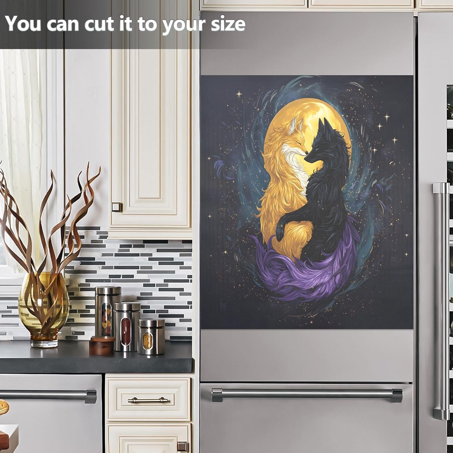 Decorate your kitchen life!This magnetic dishwasher cover is a work of art, decorating your kitchen art, with a sense of fashion and art, highlighting your quality life!Size in 23 x 26 inches. This size fits most dishwashers.Cut it to your own size to fits your need.FeatureWaterproof, heat resistant, scratch and tear resistant. Magnetic stickers hide scratches, dents or other unsightly marks.Magnetic MaterialMagnetic sticker will not fall from magnetic dishwasher and disassemble easily.Protect the dishwasher from scratches, it can also decorate your kitchen home.Please NoteMagnetic dishwasher cover is made of PVC+PET, only suit for the magnet surface.Install: Trim the proofreading position, the magnetic force on the back will stick to it.