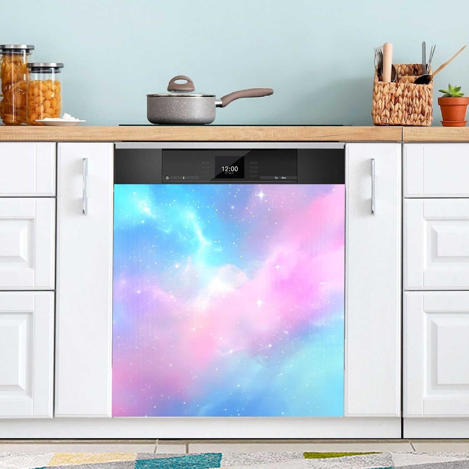 Decorate your kitchen life!This magnetic dishwasher cover is a work of art, decorating your kitchen art, with a sense of fashion and art, highlighting your quality life!Size in 23 x 26 inches. This size fits most dishwashers.Cut it to your own size to fits your need.FeatureWaterproof, heat resistant, scratch and tear resistant. Magnetic stickers hide scratches, dents or other unsightly marks.Magnetic MaterialMagnetic sticker will not fall from magnetic dishwasher and disassemble easily.Protect the dishwasher from scratches, it can also decorate your kitchen home.Please NoteMagnetic dishwasher cover is made of PVC+PET, only suit for the magnet surface.Install: Trim the proofreading position, the magnetic force on the back will stick to it.