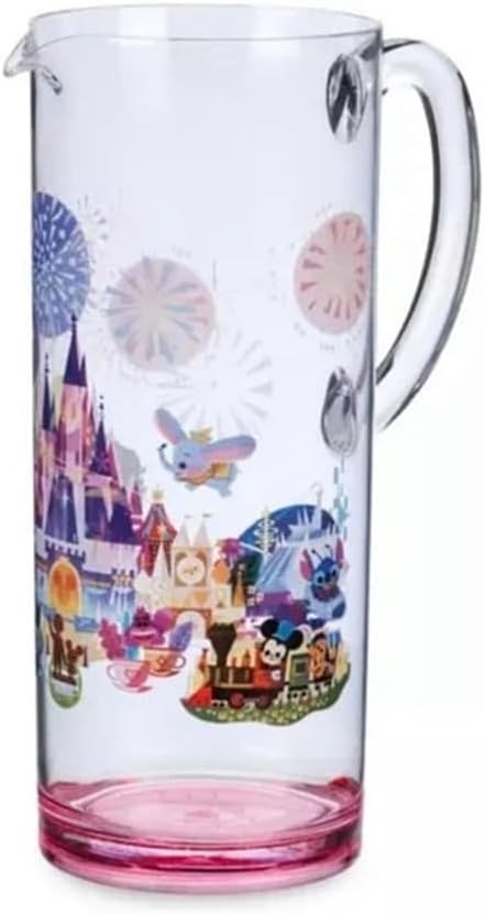 Let happy memories flow and create new ones with every pour from this Disney Parks Pitcher. A renowned Disney artist, Chou designed the distinctive artwork that features beloved Disney Parks characters and attractions including Fantasyland Castle, the ''Partners'' statue of Walt Disney and Mickey Mouse, a dazzling fireworks display and more. So bright and cheerful, it makes every gathering feel like a special occasion. Features: Disney Parks art featuring Fantasyland Castle, ''Partners'' statue of Walt Disney and Mickey Mouse, Tinker Bell (Peter Pan) Orange Bird, Dumbo, Pluto, Cheshire Cat (Alice in Wonderland), Stitch (Lilo & Stitch), a Hitchhiking Ghost (The Haunted Mansion) and others. For cold liquids.