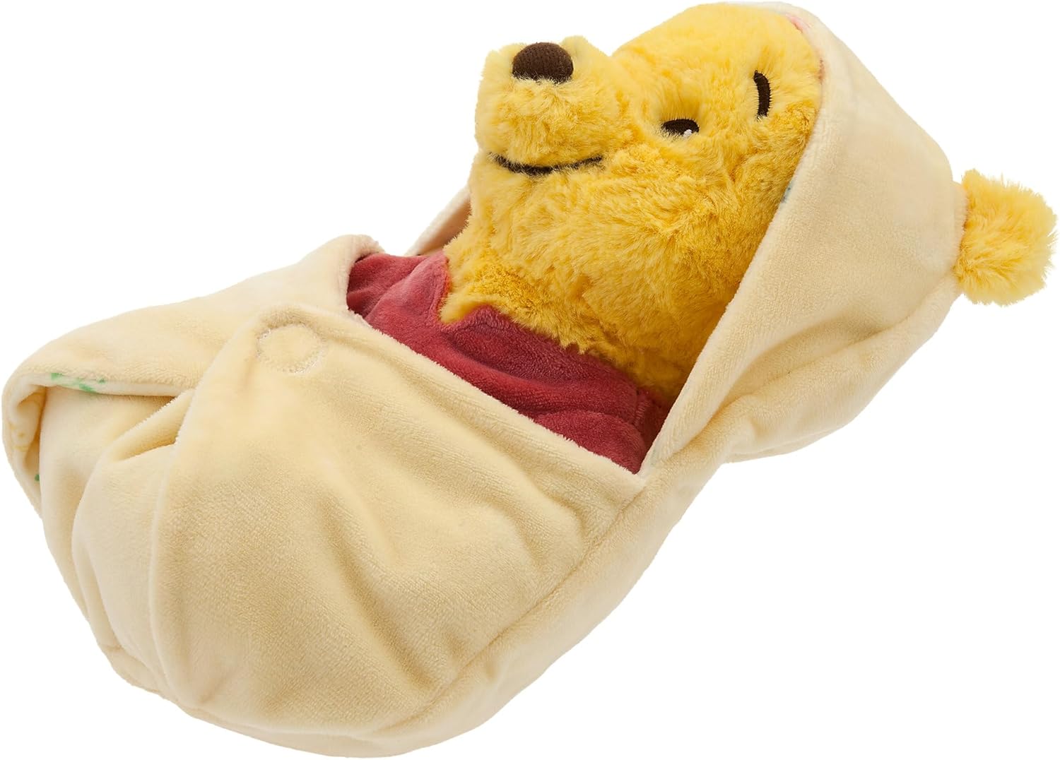 Our plush baby Pooh bear had a rumbly in his tumbly from the day he was born. Though he may be a bear of very little brain, this soft-stuffed teddy is one huggable ''hunny.'' Comes in a furry, reversible swaddle blanket with fabric closure.