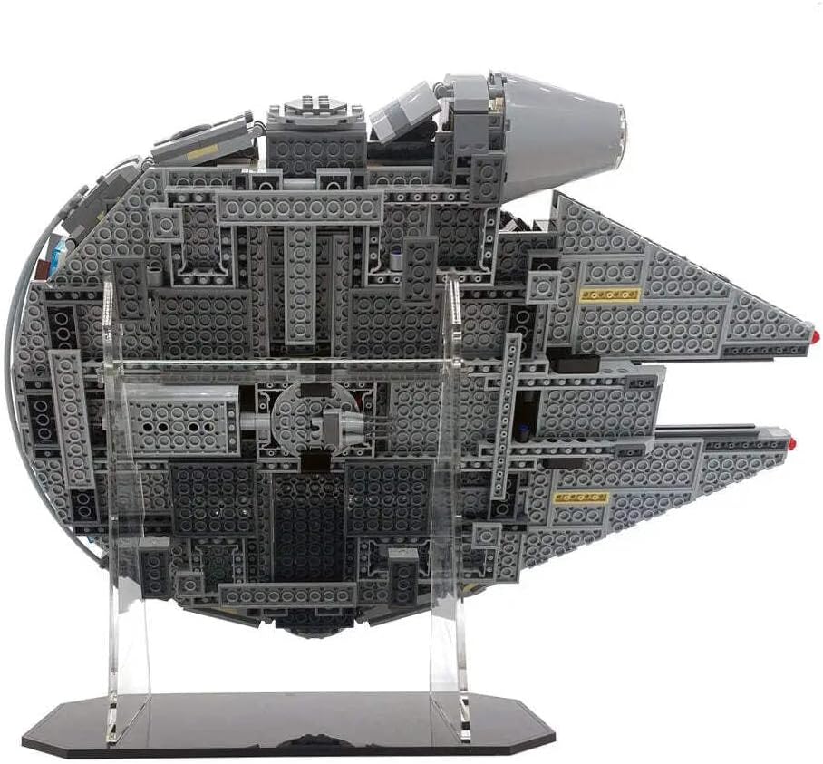 Upgrade your LEGO Star Wars collection with this display stand custom-designed to work with LEGO set 75257, Millennium Falcon. It features one main stand as well as a base to hold 7 minifigs. The overall height of the Falcon on the stand is 13 inches and the depth of the stand and model is just under 10 inches. Manufactured from high-quality 4.5mm and 3mm acrylic.Ships with a protective coating that should be removed prior to assembly.LEGO set for display only, not included with purchase.