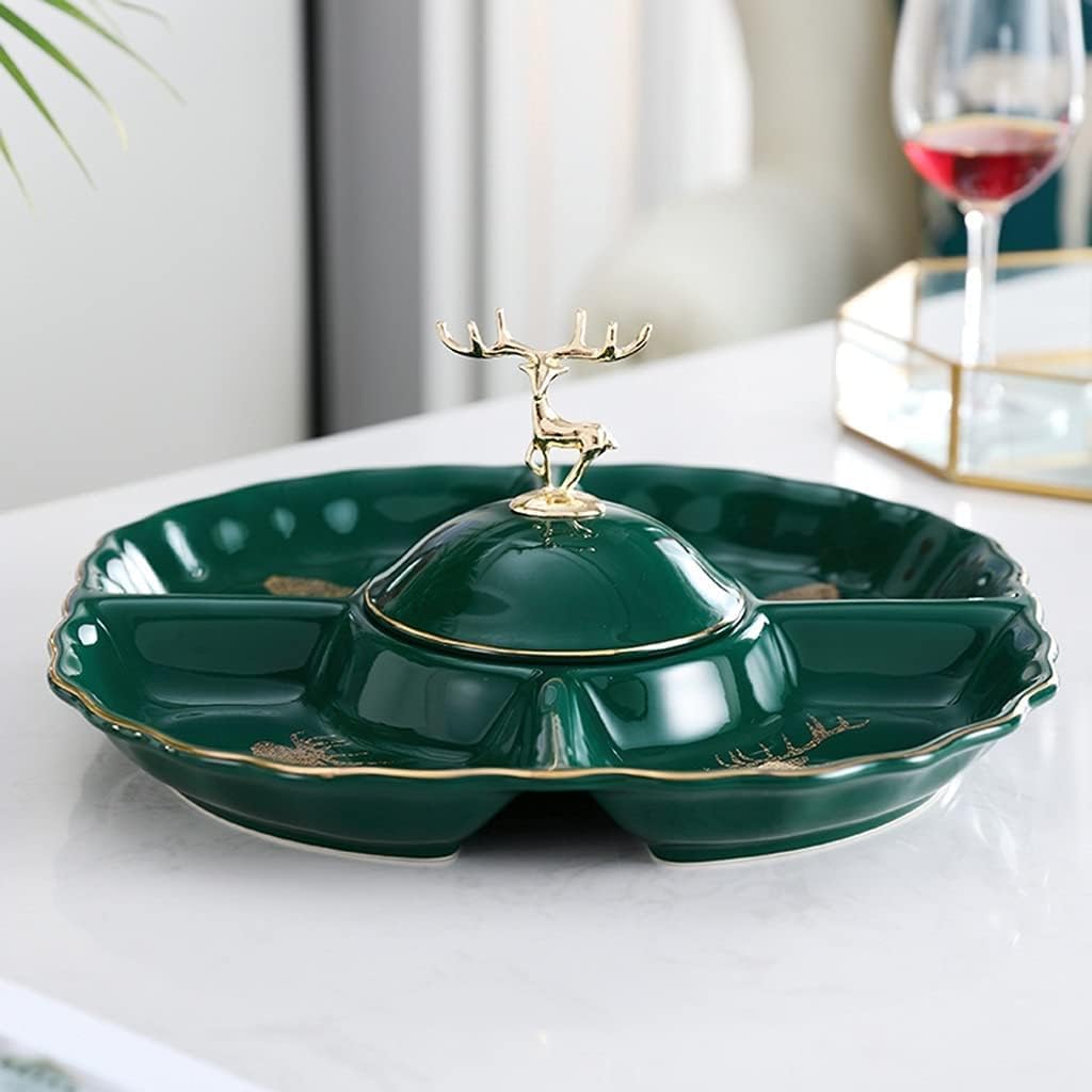 More than just a divider tray snack box! It's also a work of art. ? ? ? Great for Parties and Festivals: Whether it's a holiday party or a holiday celebration, this divider tray will ensure your snacks are organized and easily accessible. Features High-quality ceramic, durable and easy to clean. 5-grid design, one grid for one thing Parameters: Name: Nut Bowl Material: Ceramic Color: Green Size: 31 * 11.5 cm (12.20 * 4.52 inches) Product List: Only Nut Bowl*1, other products are props. ●