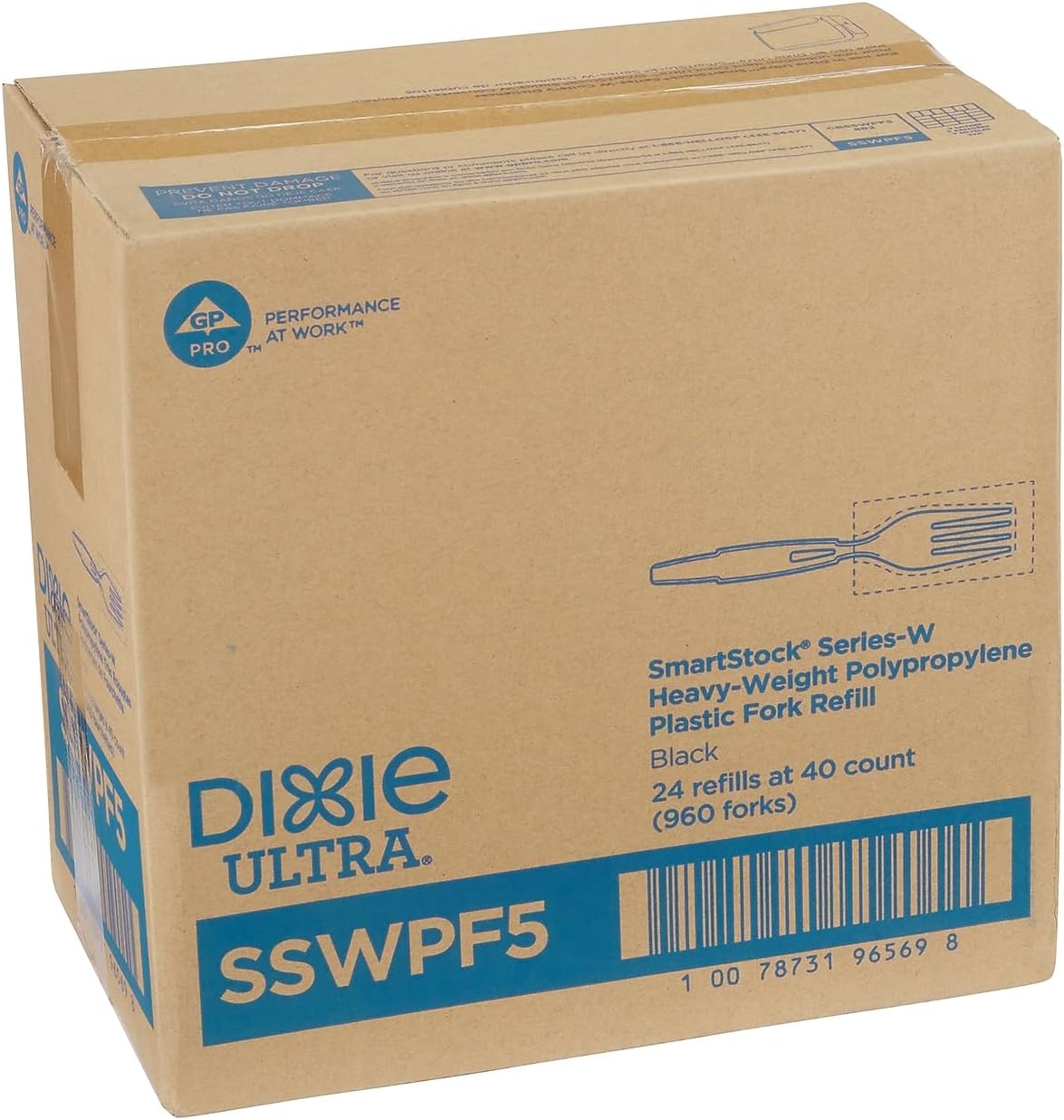 Dixie SSWPF5 SmartStock Wrapped Heavy-Weight Cutlery Refill, Fork, Black, 960/CT