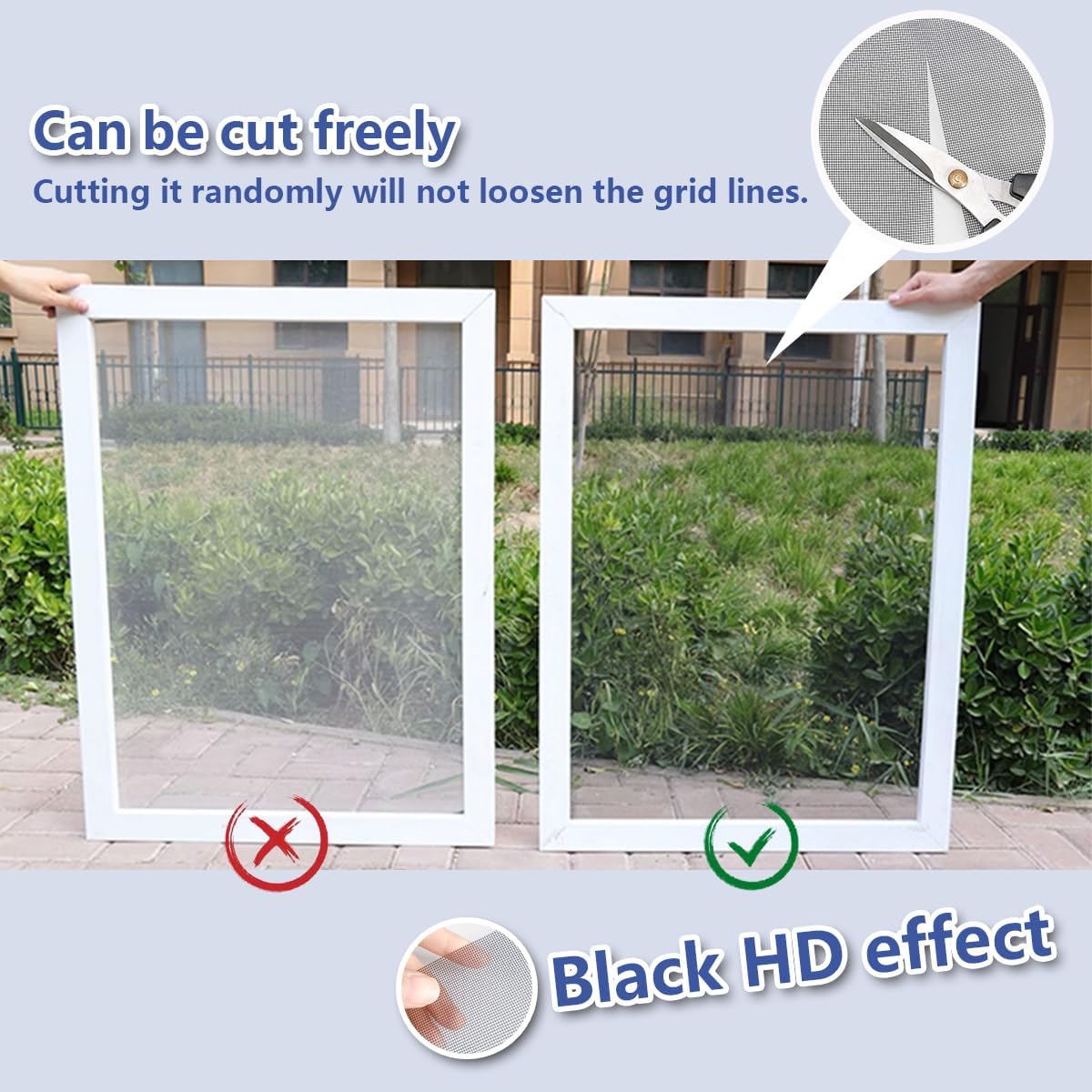 Window Screen with Black Upgraded Hook and Loop Adhesive Edging Frame Free Cutting DIY Max 20 feet Perimeter 47x73 to 42x78 inch Black Mesh Window Screens Replacement
