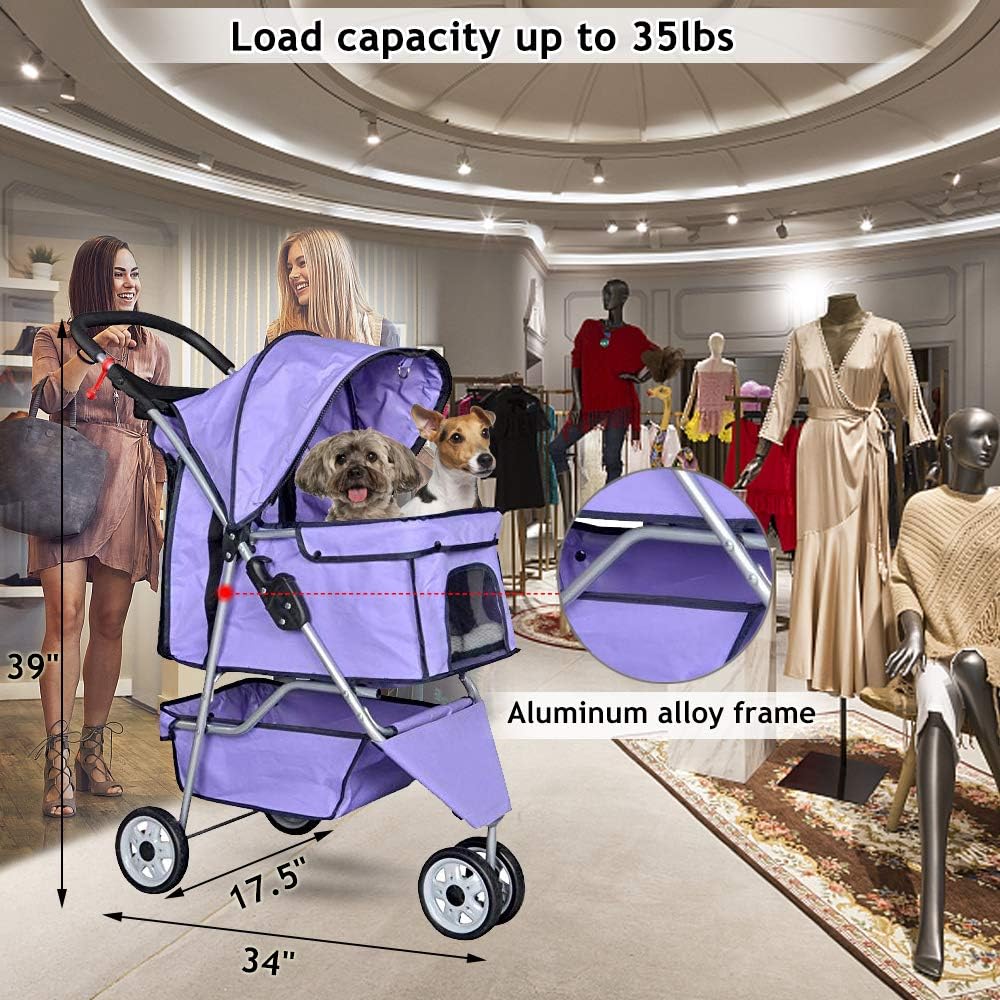 She’s your baby, your faithful companion, your trusted confidant, and – above all – an integral part of your family. He’s there for you no matter what, and looks to you for guidance, care, comfort and affection. And wherever you go, she wants to be there as well – whether it’s on a walk, shopping, running errands, or traveling. That’s why we developed our luxurious, sturdy and spacious pet strollers. Designed with plenty of space for a medium or large pet, or for housing several smaller furry friends, our durable carriers are also well-suited for dogs and cats that are older, sick, disabled, or recovering from medical procedures. With the pet stroller your forever friend can travel in style and comfort, enjoying fresh air, invigorating smells and interesting sights – and knowing that you’re right there with them, every step of the way. ♥Product Features:√Dual Cup Holders and Center Tray√Comfortable Padded Interior Bottom√Collapsible for Easy Storage√Top, Front and Rear Mesh Windows for Air Flow and Viewing√Spacious Under Basket for Added Storage √360°Swivel Front Wheels and Rear Brakes Wheels ♥Product Specifications:- Material: High Quality Nylon;- Open Size: 34"(L) x 17.5"(W) x 39"(H);- Folded Size: 32"(L) x 17"(W) x 11"(H);- Cargo Measurement: 21"(L) x 14"(W) x 19"(H);- Package Include: 1 x Pet stroller + Free Pad;- Weight Capacity: 35Lbs;Dog stroller Pet stroller cat strollers pet stroller jogger dog strollers for small dogs cats doggie stroller with cup holders, removable liner and Storage Basket 3 wheel stroller dog strollers for medium dogs Large dog Kitten cage 3 Wheels Stroller Travel Folding Carrier Strolling Cart dog stroller cat stroller pet stroller jogger with cup holders Large pet stroller for small dog double dog stroller cat stroller for medium dog, cat cage.