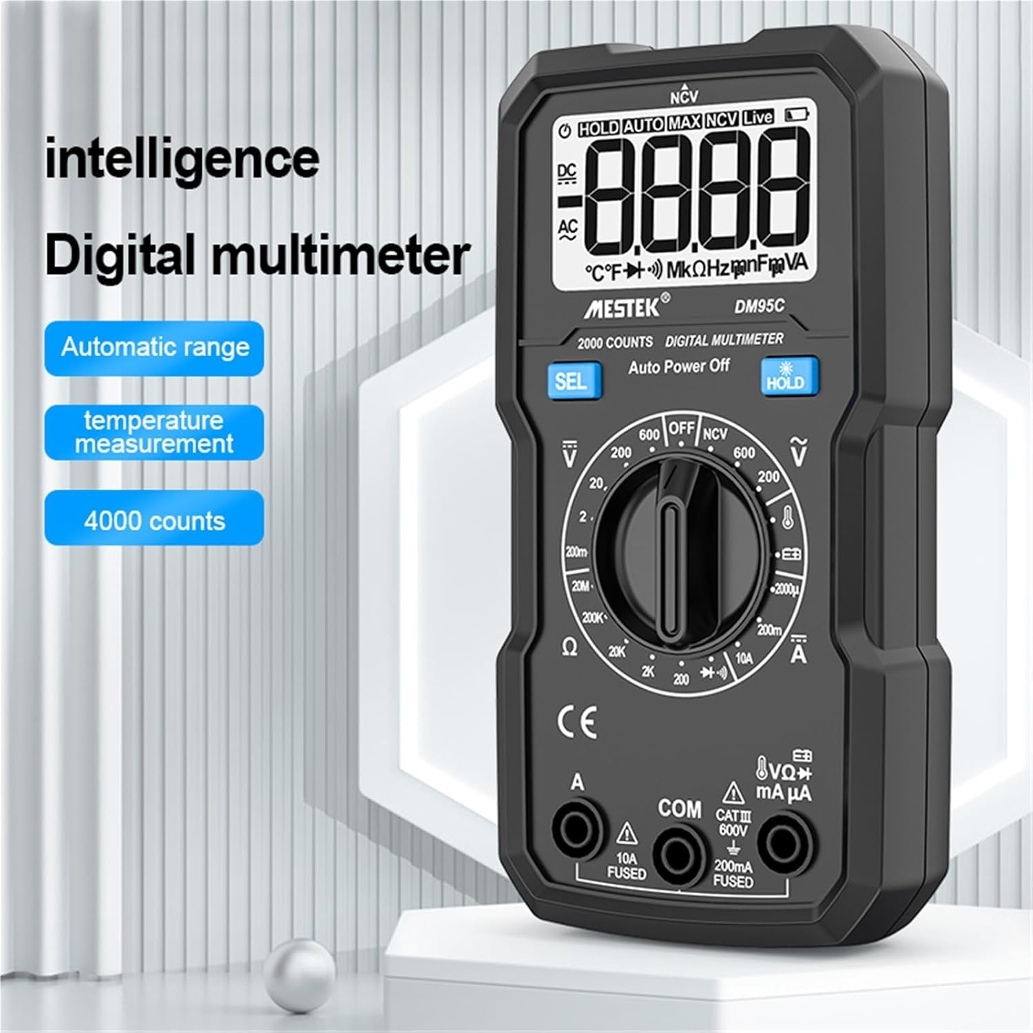 Multi TestersModel Number : DM95CPlace of Origin : Guangdong, ChinaDimensions : 144*73*32mmFeature : otherMax. AC Current : otherMax. AC Voltage : 600vMax. DC Current : 10AMax. DC Voltage : 600 VMeasuring Capacitance Range : multimeterMeasuring Inductance Range : multimeterMeasuring Resistance Range : 0-20MOperating Temperature : -20- -1000Product Name : MultitesterDisplay : LCD displayBacklight : Yesworking temperature : 0-50Weight : 146gsize : 144*73*32mmPower Supply : 2*1.5V AAstorage temperature : -20- 60