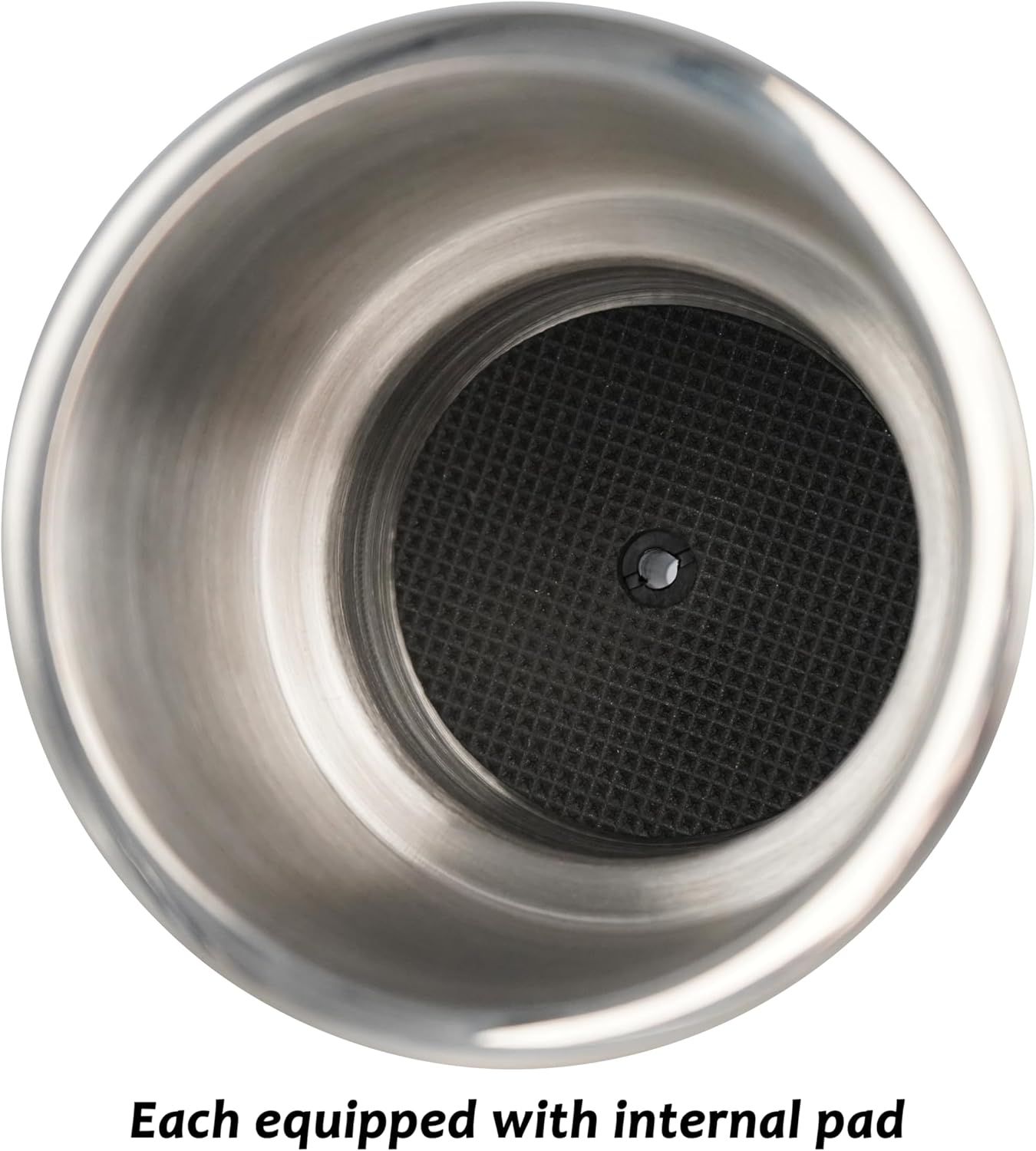 Made of high quality stainless steel material,and featuring smooth surface finish, DNB cup drink holders are durable and are also easy to clean up. Dimensions: Top of cup: inner diameter: 3.6" / 9.2cm, outer diameter: 4.2" / 10.7cm, bottom of cup diameter: 2.8" / 7.2cm, overall height: 4" / 10.1cm. Perfect for marine boat, deck, game table, counter top, dashboard, seatback, sofa, theater seating, car, trailer, caravan, etc.