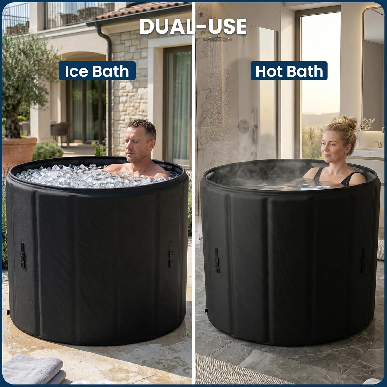 DoCred Ice Bath Tub, 31.5" W x 27.5" H Hot & Cold Plunge Tub with Inflatable seat cushion for Adults, Multiple Layered Portable Hot Tubs for for Home, Indoor & Outdoor