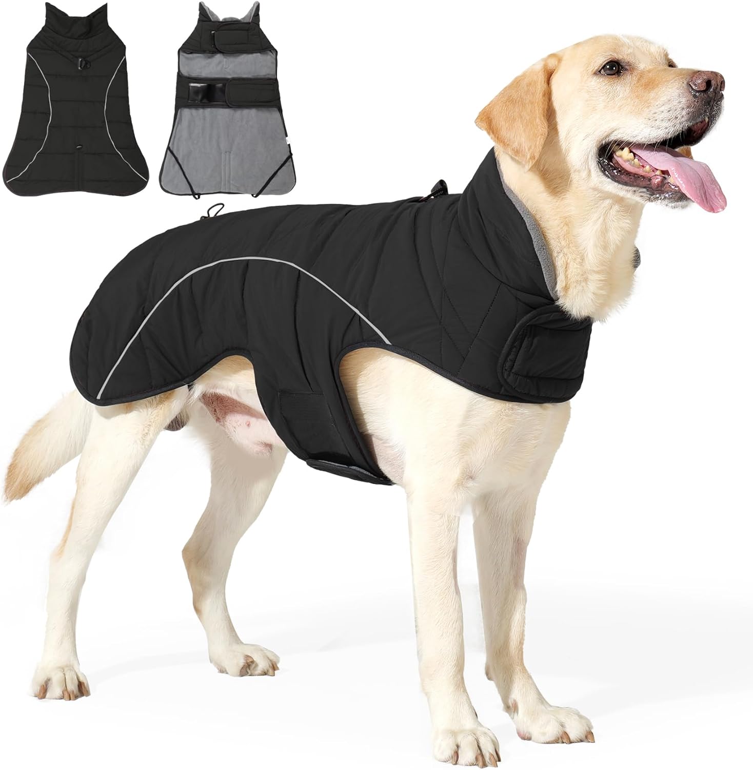 Winter Puffer Jacket Waterproof's Description Material: polyster Size: S-3XL Features: SOFT & COMFORTABLE - made of soft Polyester materials. ADJUSTABLE - Hook & loop closure for convenience Easy to clean - Machine washable D-RING - for safe outdoor activities, easy to control PET CHRISTMAS HALLOWMAS WEAR - not only suitable for everyday pet wear, but also add joy to Christmas, Halloween, Thanksgiving, New Year or pet-themed parties WINTER COATS for DOGS BREEDS- such as Teddy, Beagle, Chihuahua, Pug, Poodle, Bulldog, Corgi, Schnauzer, Scottie, Jack Russell, Labrador, Golden Retriever, etc. REAR CINCHI CORD - This dog winter clothes comes with adjustable rear cinch cord for back length adjustment and the high opening in the belly makes this dog coat easier for dogs too pee and poop. Size Chart: dog puffer coat S-Chest: 46-54cm/18.11-21.26 inch; Back: 40cm/15.75 inch; Neck: 37-42cm/14.57-16.54 inch; for dogs within 16.5-24.2lb. M-Chest: 54-64cm/21.26-25.2 inch; Back: 45cm/17.72 inch; Neck: 41-46cm/16.14-18.11inch; for dogs within 24.2-38.5lb. L-Chest: 60-70cm/23.62-27.56 inch; Back: 50cm/19.69 inch; Neck: 45-50cm/17.72-19.69 inch; for dogs within 33-49.5lb. XL-Chest: 66-76cm/25.98-29.92 inch; Back: 55cm/21.65 inch; Neck: 49-54cm/19.29-21.26 inch; for dogs within 44-60.5lb. 2XL-Chest: 72-83cm/28.35-32.68 inch; Back: 60cm/23.62 inch; Neck: 53-58cm/20.87-22.83 inch; for dogs within 55-71.5lb. 3XL-Chest: 82-95cm/32.28-37.4 inch; Back: 65cm/25.60 inch; Neck: 58-63cm/22.83-24.80 inch; for dogs within 71.5-88lb. Note: 1. Due to the light and screen difference, the item's color may be slightly different from the pictures. 2. Please allow 0.39-0.79 inch differences due to manual measurement.