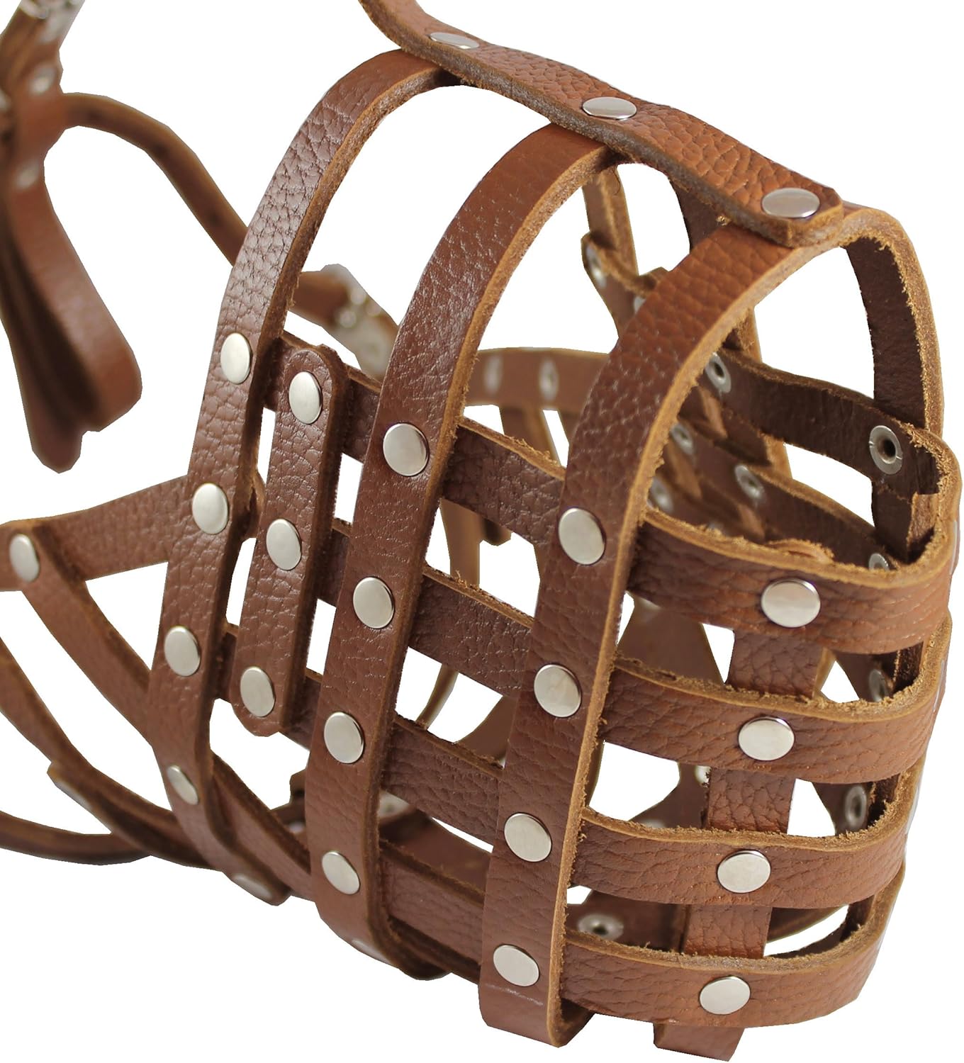 This well-ventilated quality muzzle can be very useful in many situations and everyday use - visits to a vet, traveling, off-leash walks, preventing eating off the ground, yet allow for panting and drinking, providing the ultimate in comfort and safety for both the dog and owner or trainer. Well-fitting, light weight, soft and comfortable, but strong and durable. Safe and non-toxic. The straps are adjustable and won't stretch. Equipped with between the ears strap and is very difficult for the dog to remove, they do not slip off accidentally very easily. Please measure snout circumference and length for fit.