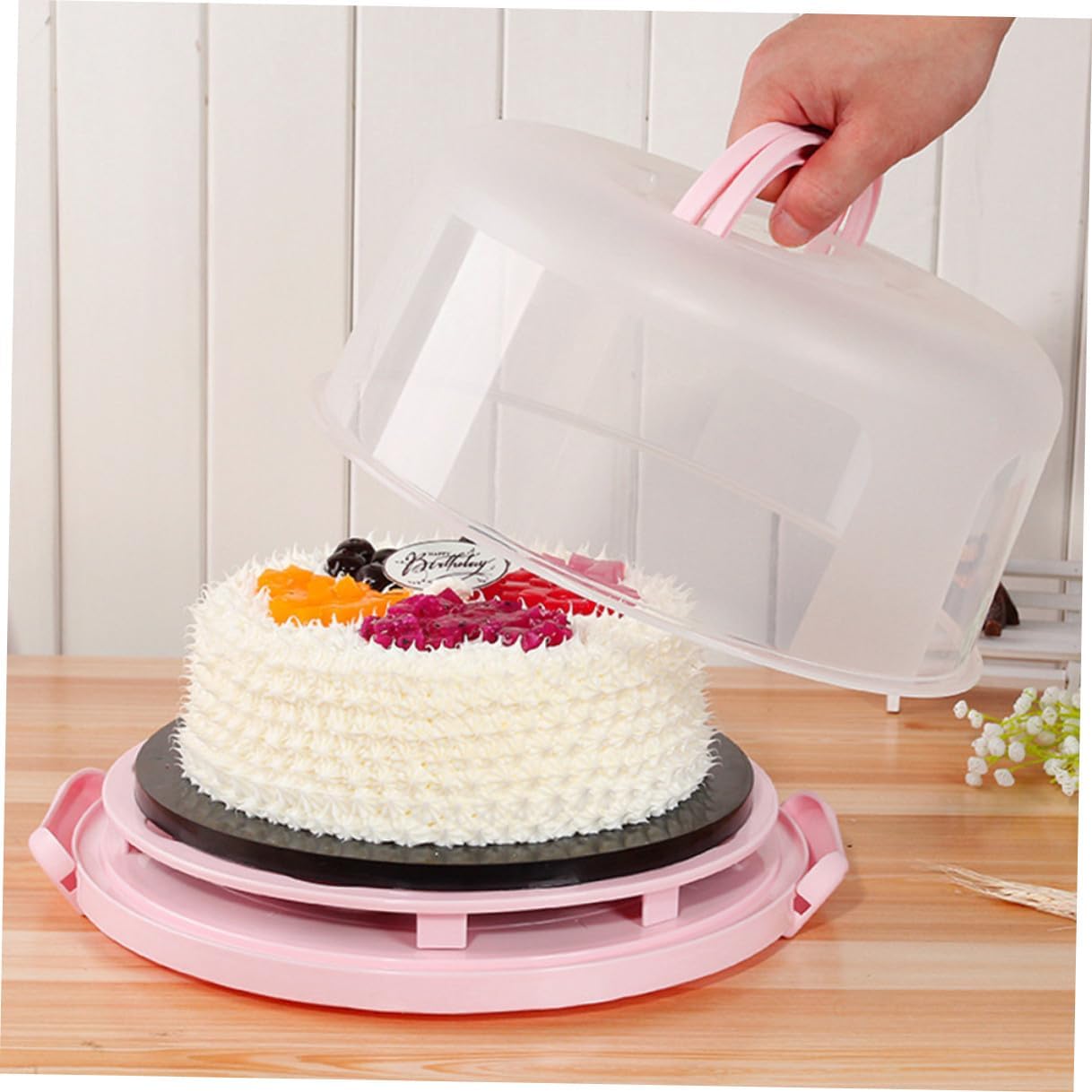 Package List 1 × Cake Carrier Features -Product Info:Cake box -Color:Pink -Material:Plastic -Size:30.50X30.50X15.50cm/11.99X11.99X6.09in - Our transparent circular dome keeps the cake undistorted and intact during transportation round casserole carrier. - You can use this cake carrier to packing your small cake, and welcome your friends to your party travel cake carrier. - Adopting from plastic material, which is lightweight, with and good workmanship. - Just use the easy-carry handle, and the clear lid that lets you show off your best baked goods while protecting cake cupcake carrier. - It can be used to carry birthday cake, or cupcakes, tarts, cookies, pies, muffins and other baked snacks cake carriers.Goods Descriptioncupcake carriers This is an cake carrier with a lid, handle for easy lifting, making this cake carrier to be the most fashionable dessert storage container you can own.small cake carrier This transparent cake carrier is good for cakes, bread, dessert and other food